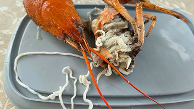 วันที่ 27 ก.พ. 2567 มีรายงานว่า ผู้ใช้เฟซบุ๊ก Minny Mint ได้โพสต์ภาพกุ้งเครย์ฟิชที่มีเส้นสีขาวออกมาจากส่วนหัวของกุ้งลงในกลุ่ม นี่ตัวอะไร โดยระบุข้อความว่า "เส้นใยสีขาวคือตัวอะไรคะออกมาจากหัวกุ้งเครฟิชค่ะ ตัวอื่นไม่มี...เพิ่งเจอตัวนี้ตัวแรก"