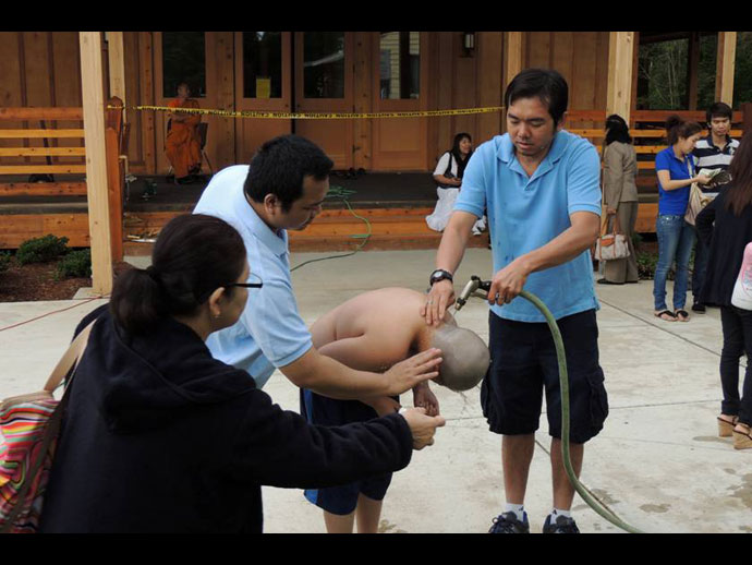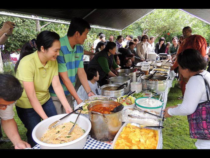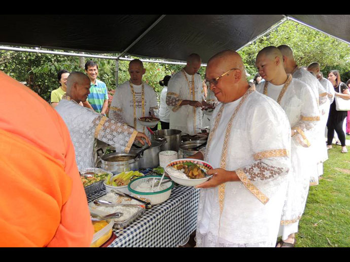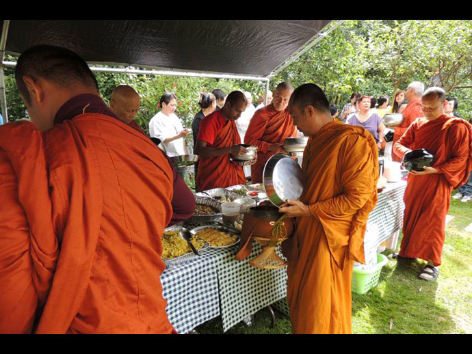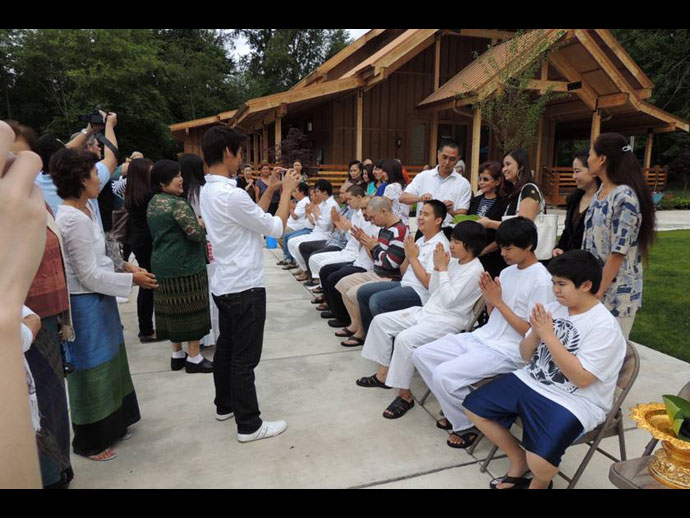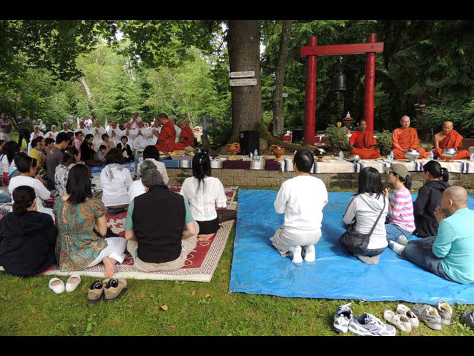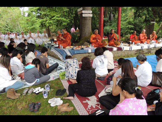 พระธรรมทูต จะออกบิณฑบาตร ณ บริเวณวัดอตัมมยตาราม เมืองวู๊ดเดิ้นวิลล์(Woodinville, WA) และในช่วงเย็นก็จะเป็น