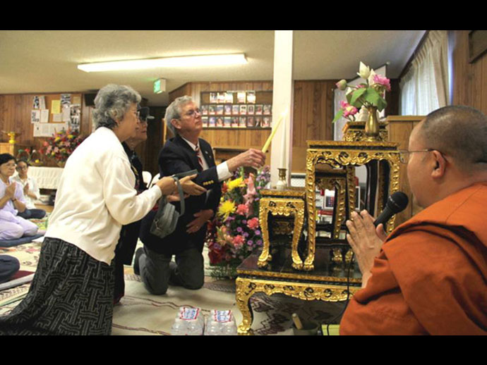พุทธศาสนิกชนทั้งชาวไทยและต่างชาติก็ได้ร่วมกันจัดพิธีอำลาอาลัย เพื่อขอบคุณต่อทางเจ้าของสถานที่และคณะผู้บริหารที่มีความเอื้ออารีย์ให้ได้เช่าสถานที่เพื่อใช้ในกิจกรรมต่างๆตลอดมาในราคาถูกและด้วยความเป็นกันเองที่ American Legion Hall เป็นครั้งสุดท้ายดังภาพที่เราได้นำมาเสนอบนหน้าข่าวนี้........* และเริ่มตั้งแต่วันพรุ่งนี้... วันอาทิตย์ที่ ๓๐ กันยายนเป็นต้นไป ทาง