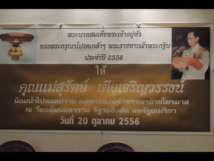 งานทอดผ้าพระกฐินพระราชทาน ณ วัดวอชิงตันพุทธวนาราม สัปดาห์ถัดไป วันอาทิตย์ที่ ๓ พฤศจิกายน งานทอดกฐินสามัคคี ณ วัดพุทธปัญญานันทาราม เมืองแวนคูเวอร์ ประเทศแคนาดา........* เกิดสัปดาห์นี้...