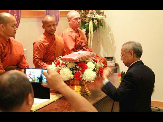 พระครูสิทธิธรรมวิเทศ เจ้าอาวาสวัดอตัมมยตารามที่นำกฐินเดินทางกลับไปทอดที่วัดบ้านเกิด