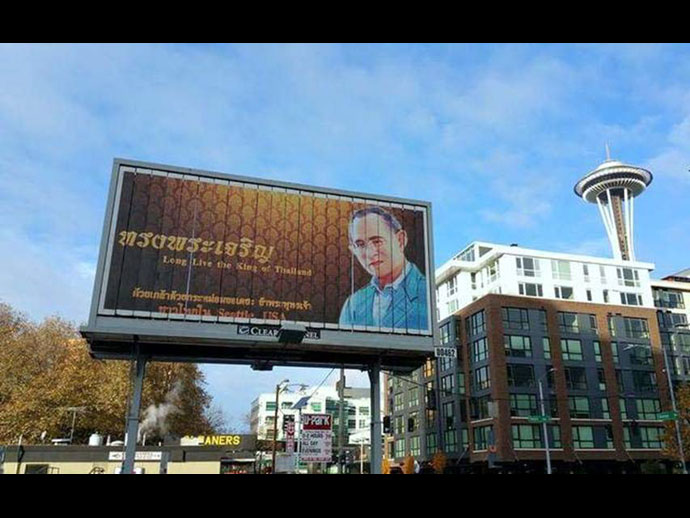พร้อมคำถวายพระพร ยังความปลาบปลื้มแก่คนไทยในซีแอตเติ้ลเป็นยิ่งนักที่ได้มีโอกาสได้ถวายความจงรักภักดีและถวายพระพรให้ปรากฏแก่สายตาชาวโลกในต่างแดนโดยจะยังคงประจักษ์แก่ชาวโลกต่อไปจนกระทั่งถึงวันที่ ๑๔ มกราคม ศกหน้า ที่บริเวณหน้าซีแอตเติ้ลเซ็นเต้อร์........* หน้าข่าวจากซีแอตเติ้ลฉบับนี้เป็นฉบับประจำวันเสาร์ที่ ๒๙ พฤศจิกายน ๒๕๕๗......เป็นฉบับสุดสัปดาห์หลัง