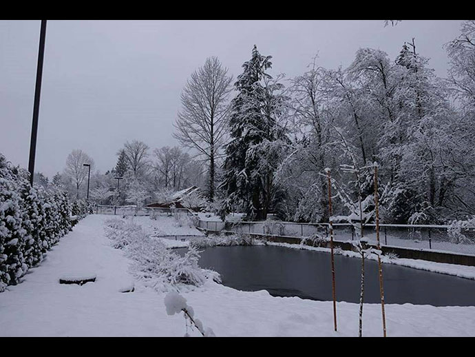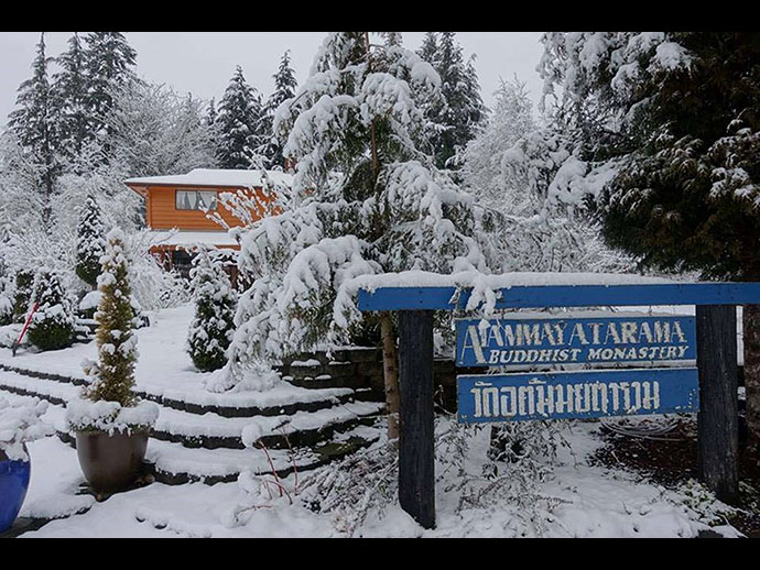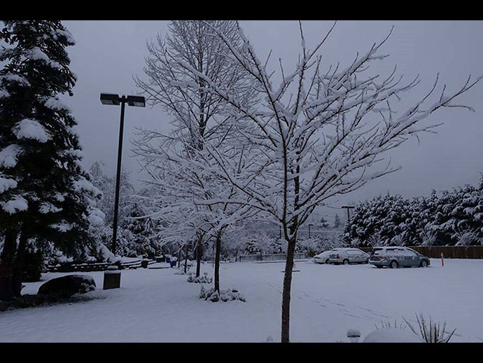 จากพายุลมหนาวครั้งล่าสุด ประกอบกับจำนวนความชื้นหรือละอองน้ำในอากาศที่อยู่ในอากาศ ทำให้เกิด “พายุหิมะ” น้อยๆพร่ำโปรยลงมาตั้งแต่ค่ำคืนวันอาทิตย์ที่ ๕ กุมภาพันธ์ต่อเนื่องจนกระทั่งเกือบบ่ายๆของวันจันทร์ที่ ๖ กุมภาพ้นธ์ ทำให้ซีแอตเติ้ลและเมืองใกล้เคียงเกิดอาการอาพาธง่อยเปลี้ยขาเสียไปอีกครั้ง สถานที่ราชการ ธุรกิจการค้า ธนาคาร และโรงเรียนต้องปิดโดยปริยายด้วยนักเรียนหรือพนักงานและข้าราชการไม่สามารถเดินทางมาทำงานหรือเข้าเรียนได้ตามปกติจนกลายเป็นที่โจทย์ขานเป็นข่าวดังเหนือข่าวตำสั่งศาลที่ระงับคำสั่งประธานาธิบดีทรัมป์ห้ามพลเมืองจากประเทศมุสลิม ๗ ประเทศเข้าประเทศสหรัฐเป็นเวลา ๙๐ วันที่ยังความปั่นป่วนไปทั่วจนที่สุดรัฐวอชิงตันจำต้องยื่นเรื่องต่อศาลให้ระงับคำสั่งดังกล่าวเพื่อปกป้องพนักงานบริษัทและสมาชิกครอบครัวที่ถูกกักกันหรือปฏิเสธการเดินทางกลับเข้าประเทศ........* อย่าลืม... พรุ่งนี้ วันอาทิตย์ที่ ๑๒ กุมภาพันธ์ ขอเชิญร่วมพิธี