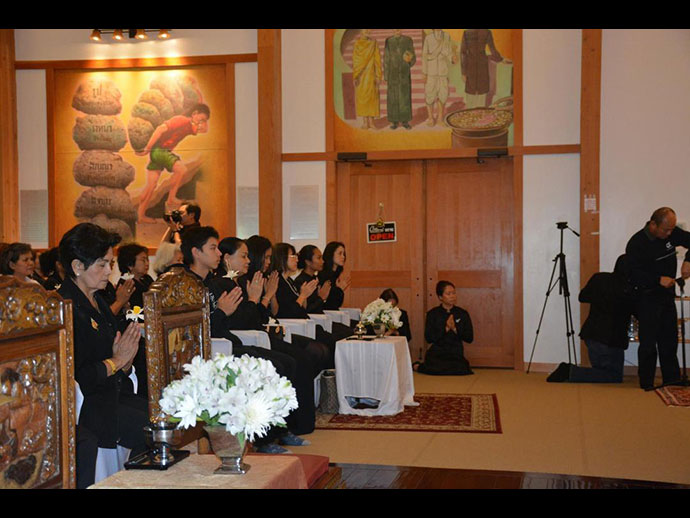 จนกระทั่งเสร็จงานพระราชพิธีถวายพระเพลิงพระบรมศพพระบาทสมเด็จพระปรมินทรมหาภูมิพลอดุลยเดช นาถบพิตร ในวันที่ ๒๖ ตุลาคม ซึ่งบางท่านอาจจะอยู่ต่อถึงงานสลายสรีระร่างของหลวงพ่อปัญญานันทะที่จะมีขึ้นในวันที่ ๔-๕ พฤศจิกายนที่วัดชลประทานฯ........* สำหรับผู้ที่ไม่สามารถเดินทางกลับเมืองไทยได้ ก็ได้ไปร่วมพิธีถวายดอกไม้จันทน์