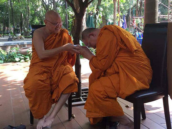เจ้าคุณวิเทศสิทธิธรรมาภรณ์ (ฤทธิ์ ถิรจิตโต) เจ้าอาวาสวัดอตัมมยตารามหลังจากเดินทางกลับไปร่วมงานสลายสรีรพระพรหมมังคลาจารย์ (หลวงพ่อปัญญานันทะ)และปฏิบัติศาสนกิจในเมืองไทยอยู่กว่าเดือน........* และ