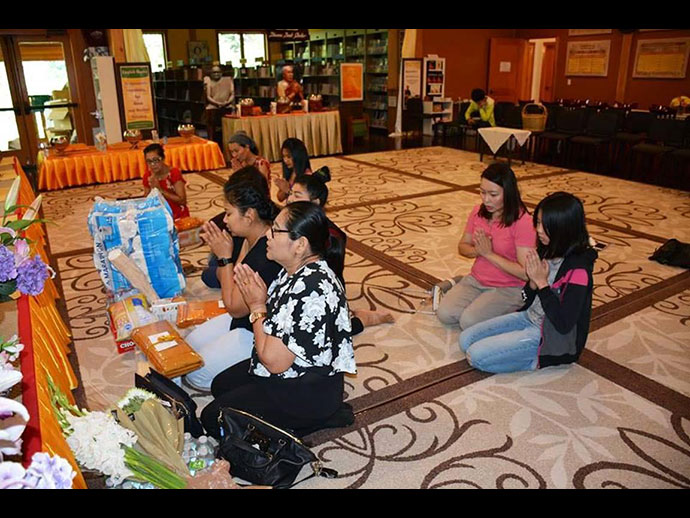 ถวายความเคารพต่อหน้าพระบรมฉายาลักษณ์สมเด็จพระนางเจ้าสิริกิติ์ พระบรมราชินีนาถในรัชกาลที่ ๙ แม่ของแผ่นดิน จากนั้น ร่วมกันอาราธนาศีล รับศีล (พระวิเทศสิทธิธรรมาภรณ์) เสร็จแล้ว คุณแสงเดือน เอื้อศิริวงศ์ ประธานกรรมการวัด กล่าวรายงานและเปิดงาน พระครูปริยัติพุทธิวิเทศนำกล่าวคำขอขมาแด่แม่ คุณฐิติพร แช่มจันทร์นำร้องเพลง “แม่” ลูกๆมอบดอกไม้ให้กับแม่ คณะสงฆ์มอบของขวัญที่ระลึกให้กับคุณแม่ พระสงฆ์ทั้งมวลให้พร พระวิเทศสิทธิธรรมาภรณ์และตัวแทนคุณตัดริบบิ้น พระสงฆ์ออกรับอาหารบิณฑบาตร ทุกท่านร่วมตักบาตร พิธีกรกล่าวขอบคุณร้านอาหารต่างๆ และอาสาสมัครที่มาช่วยงาน เป็นอันเสร็จสิ้นพิธีช่วงวันแม่อย่างเป็นทางการ และที่สุดแห่งการรอคอย ช่วงปิกนิก ซุ้มอาหารจากร้านอาหารต่างๆ และพ่อครัวแม่ครัวหัวป่าจิตกุศล