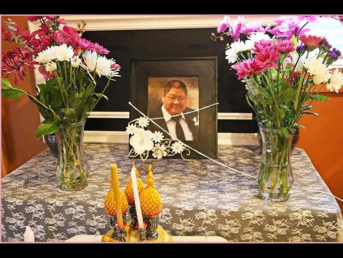 สมศักดิ์ มหกฤติยาธร (อดีตประธานกรรมการวัดอตัมฯ) ที่ได้เสียลูกชายสุดที่รัก (