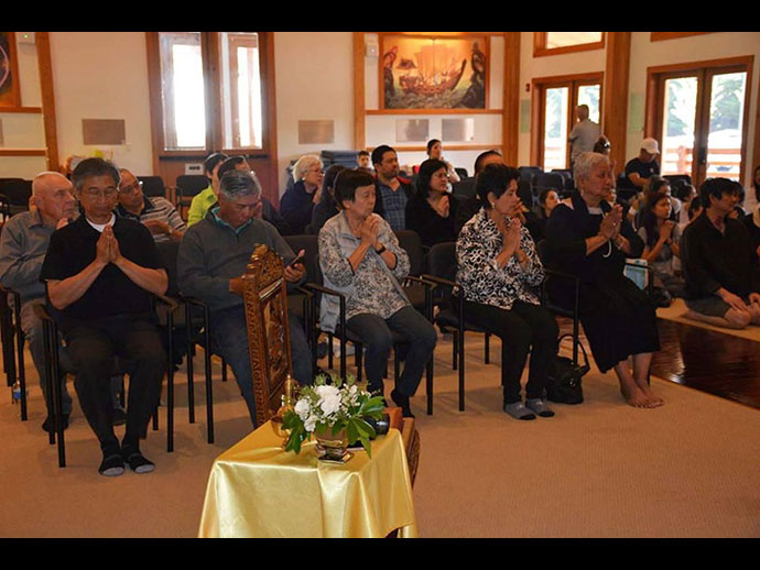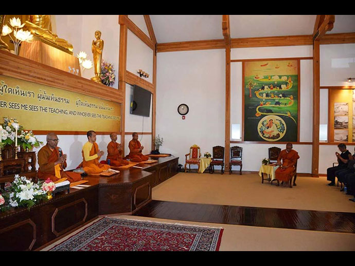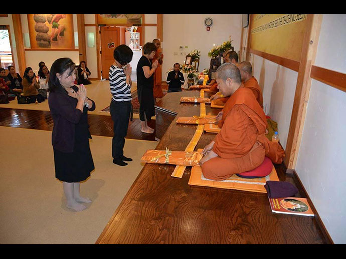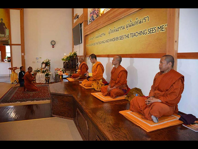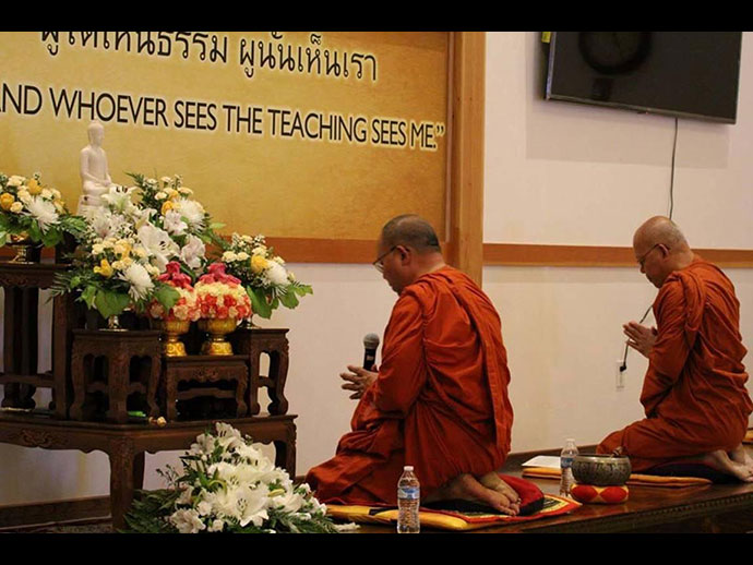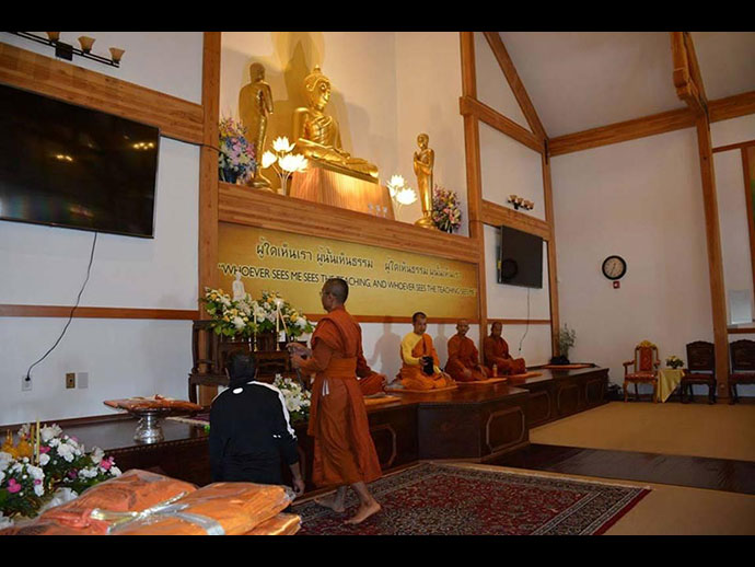 พระวิเทศสิทธิธรรมาภรณ์ (เจ้าคุณฤทธิ์ ถิรจิตโต) รองประธานกรรมการสมัชชาสงฆ์ไทยในสหรัฐอเมริกา และเจ้าอาวาสวัดอตัมมยตาราม.........* และ