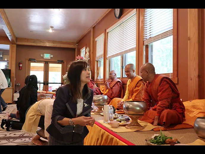 พระวิเทศสิทธิธรรมาภรณ์ (เจ้าคุณฤทธิ์ ถิรจิตโต) รองประธานกรรมการสมัชชาสงฆ์ในสหรัฐอเมริกา และเจ้าอาวาสวัดอตัมมยตารามที่โยมน้องในรับเลื่อนตำแหน่งราชการเป็น