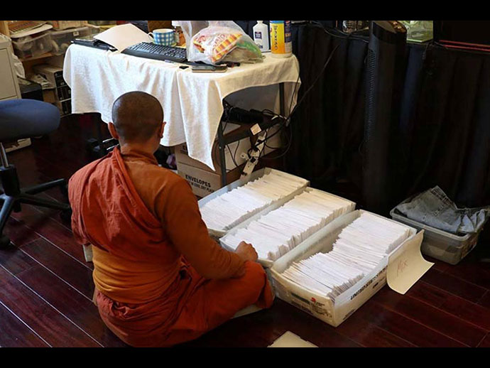 พระวิเทศสิทธิธรรมาภรณ์ (ท่านเจ้าคุณฤทธิ์ ถิรจิตโต) รองประธานสมัชชาสงฆ์ไทยในสหรัฐอเมริกา เจ้าอาวาสวัดอตัมมยตาราม ได้เดินทางลงไปปฏิบัติหน้าที่แทน