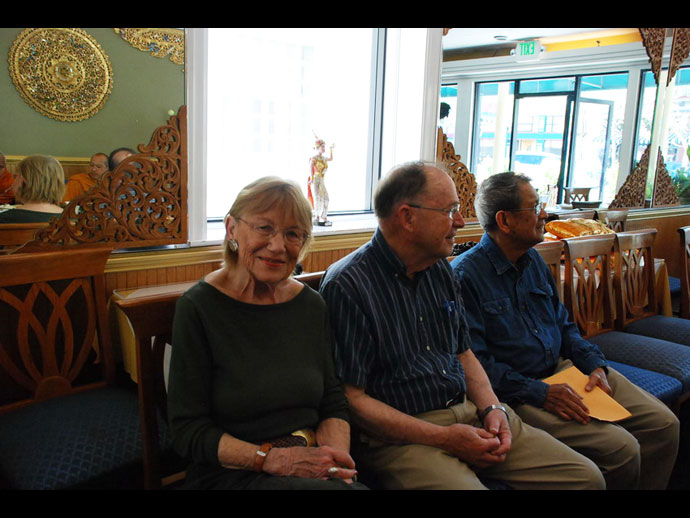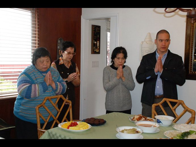 มาร่วมงานฉลองสรรค์ มอบขวัญและกำลังใจ ให้กับพี่สบสุข และเลี้ยงฉลองเทศกาลสงกรานต์ กัน ด้วย ข่าวว่า มีเพื่อนเช่น นายวัลลภ คชินทร นายกสมาคมไทยแห่งแคลิฟอร์เนียภาคเหนือ คนใหม่ คณะกรรมการมี นายวีระชัย จงเจริญรุ่งเรือง คุณคิด จักกะพาก เป็นต้น นายเจือ รัตนพันธ์ อดีตนายกสมาคมไทย ฯ คุณ Peter thai tast คุณองุ่น พลูเลอร์ ,คุณปัญญา เจษฏาวิโรจน์ รวมไปถึงบุคคลที่เคารพนับถือ เกือบครึ่งร้อย คน ต่างเดินทางมาร่วมงานกันอย่างคับคั่ง ข่าวว่า ที่สร้างความเซอร์ไพร์ให้กับการจัดงานครั้งนี้ คือ ท่านพระครูวรสิทธิวิเทศ เจ้าอาวาสวัดพุทธประทีป ซานฟรานซิสโก พร้อมกับคณะสงฆ์ และผู้ติดตาม ได้เดินทางไปอวยพร เป็นกำลังใจมอบช่อดอกไม้ ให้กับ คุณสบสุข ศิริโภค และเถ้าแก่มงคล ศิริโภค ด้วยความประทับใจยิ่ง.. ทางเจ้าของบ้าน นายช่างอุดม กับภรรยา วีรอร ธรรมสิทธิ์ พร้อมกับเพื่อน ถือโอกาสอันเป็นมงคลเทศกาลสงกรานต์ สรงน้ำพระ ในช่วงค่ำคืนนั้นเลย..วิถีชีวิตของไทย วัฒนธรรมไทย ประเพณีไทย มิอาจลืมเลือนได้.. ข่าวว่าหลังจากพระคุณเจ้าเดินทางกลับวัด แล้ว มีการเฉลิมฉลอง ร้องเพลงกัน จนถึงดึกดื่นเที่ยงคืน.. แน่. บ้านใครบ้านฉันก็แล้วกัน