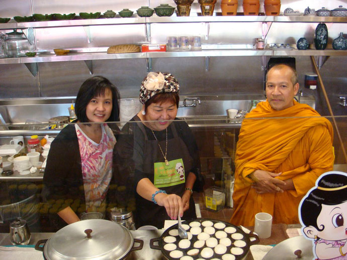 พลาดโอกาสติดตามพระอาจารย์ พระครูวรสิทธิวิเทศ เจ้าอาวาสวัดพุทธประทีป ซานฟรานซิสโก เดินทางไปปฏิบัติศาสนกิจ ที่นครลอสแอนเจลิส แต่มีคณะผู้ติดตาม เช่นคุณโรเบอร์ด จันทร์เฉลิม จากประเทศไทยและคุณผดุงศักดิ์ กล้าหาญ เมื่อช่วงเช้าของวันที่ 26 ตุลาคม 2555 ที่ผ่านมา ข่าวว่า หลังจากท่านอาจารย์ ได้ปฏิบัติศาสนกิจเสร็จสิ้น ก็มุ่งตรงไปยังร้านทองหล่อ ใกล้บริเวณไชน่าทาวน์ ในฐานะผู้ติดตาม ได้เขียนบรรยายกาศการเดินทาง ค่อยข้างสะดวกสบาย การจราจรก็ไม่ติดขัด เพียงแต่ เจ้าหน้าที่ขับรถไม่ชำนาญในการเดินทาง ก็ค่อยเป็นค่อยไป จนถึงที่หมายปลายทางคือ แวะเยี่ยม ร้านขนมครก เงินล้าน ของแม่ติ๋ง รุจิลาภา พัฑฒนะ บก.หนังสือพิมพ์ไทยแอล.เอ. ยอดพิมพ์พุ่งกระจูด ข่าวว่าขนมครก ขายดิบขายดี ดังไปถึงนครซานฟรานซิสโก หรืออาจจะทั่วอเมริกาแล้วก็ได้ ปากต่อปากเล่ากันต่อ ๆ ไป จนกระทั่ง ท่านเจ้าของฉายา ขนมกครกเงินล้าน แคะแทบไม่ทัน ใครอยากทาน เพราะว่าเป็นขนมที่ใครกล่าวกันว่า หาทานยาก ต้องเข้าแถวรอคิวกันเป็นรวมไปถึงท่านพระอาจารย์ด้วย ภายในร้านมีหนังสืออ่านเล่นบ้าง นวนิยาย การ์ตูน หนังสือภาควิชาการ รวมไปถึงขนมนานาชนิด ทั้งขนมแห้ง ขนมน้ำ ขนมสด ถ้าผู้ใดเข้าร้านรับรองไม่ผิดหวัง อย่างน้อย ๆ ต้องได้ชิมขนมครก อร่อย หอมหวล กลมกล่อม ชวนทานยิ่งนัก ฝีมือหรือสูตรแม่ติ้งโดยเฉพาะ มีแห่งเดียวเท่านั้นที่นครลอสแอนเจลิส หรือจะซื้อของขวัญติดไม้ติดมือไปฝากคนทางบ้าน รับรอง ชาตินี้ที่รัก.. รักตลอดชีวิตและตลอดไป ไม่สงวนลิขสิทธิ์ สามารถนำไปใช้ได้มนต์ขลังยิ่งกว่าอื่นใด.. หลังจากเจ้าของสูตรขนมครกเงินล้าน มีเวลาว่าง ก็แว๊บมาสนทนากับพระอาจารย์ สอบถามสารทุกข์สุกดิบตามประสาบุคคลที่เคารพนับถือรู้กันและกัน นาน ๆ พบกัน แคลิฟอร์ภาคเหนือกับแคลิฟอร์เนียภาคใต้ก็ไกลโขหลายชั่วโมง ได้เวลาอันสมควรพระอาจารย์และคณะขอลาเดินทางกลับ คุณพี่ รุจิลาภา ได้น้อมถวายขนมนานาชนิดติดมือบุญหล่นทับจึงกลับสู่นครซานฟรานซิสโก ลูกศิษย์ผู้ติดตามก็พลอยฟ้าพลอยฝนได้รับอานิสงค์ครั้งนี้ด้วย ครับ...