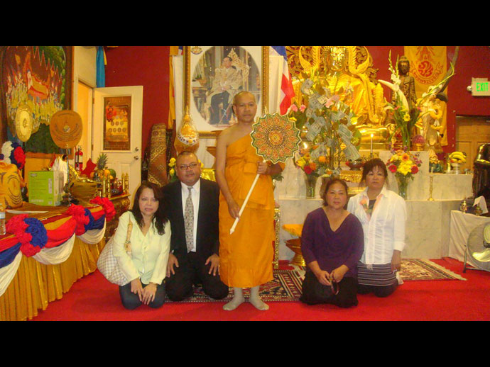 พร้อมนี้ขอเชิญร่วมเป็นเจ้าภาพ ถวายชุดผ้าไตรและอุปกรณ์การปฏิบัติธรรมตามกำลังศรัทธา ผ้าไตรจีวร ๑๘ ชุด ๆ ละ $ ๙๙ เหรียญ บาตร ๙ ชุด ๆ ละ $ ๑๒๙ เหรียญ ผ้าห่ม ๙ ผืน ๆ ละ $ ๗๙ เหรียญ หมอน, เสื้อกันหนาว, รองเท้า, ถุงเท้า ชุด ละ $ ๙๙ เหรียญ