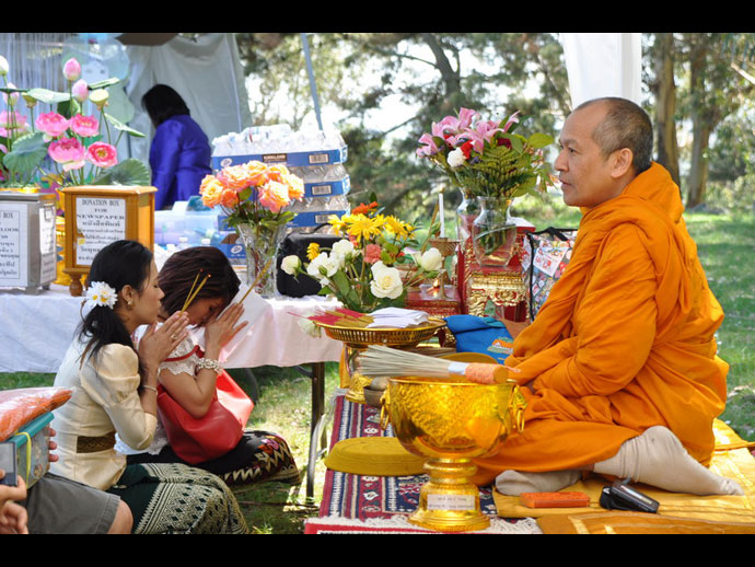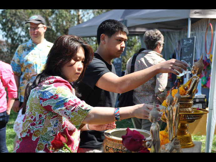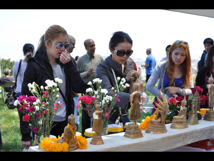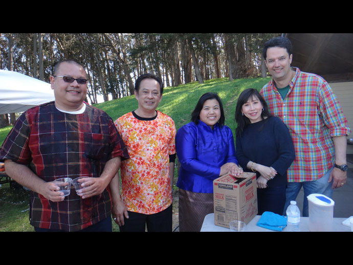 @@@. ประสบความสำเร็จอย่างดี ข่าวจากคณะกรรมการสภาวัฒนธรรมไทยแห่งแคลิฟอร์เนียภาคเหนือ ที่ร่วมกันจัดงาน สืบสานประเพณีวันสงกรานต์ ณ บริเวณ บนยอดเขาเมืองซาน บรูโน่ Counrty San mateo Park เมื่อวันที่ 13 เมษายน 2557 ตั้งแต่เวลา 10.00 -17.00 น. บรรยากาศการจัดงานในครั้งนี้ ถือว่าเป็นครั้งแรกในการจัดงานนอกสถานที่ นางสาวสิริกุล สายสืบญาติ รองประธานสภา ฯ ในฐานะประธานจัดงาน สืบสานประเพณีวันสงกรานต์ กล่าว ว่า ในฐานะน้องพลอย ได้เข้ามาทำหน้าที่ นี้ ถือว่าได้สืบสานต่อจากพ่อ ก่อนที่คุณพ่อจะเสียชีวิต (สมชาย สายสืบญาติ ) จากพวกเราไป ท่านได้อบรบสั่งสอนลูก ๆ ให้เป็นคนดี หมั่นเข้าวัด ทำบุญสร้างกุศล สร้างความดี ทำงานให้กับสังคมส่วน ซึ่งน้องพลอยได้เห็นคุณพ่อ คุณแม่ ทำงานตลอด คุณพ่อเคยพาน้องพลอย แบกพรม แบกเก้าอี้ จัดสถานที่ ช่วยเหลือกิจกรรมของวัด ในแถบแคลิฟอร์เนียภาคใต้ จนชินแล้ว หลังจากที่ย้ายมาศึกษาต่อนครซานฟรานซิสโก คุณพ่อคุณแม่ได้ย้ายตามน้องพลอย จนกระทั่งเรียนจบ และได้ทำงานที่ซานฟราน คุณพ่อ-แม่ ได้พาน้องสาวน้องชาย และน้องพลอย มาที่วัดพุทธประทีป ซานฟรานซิสโก คุณพ่อเคยบวช ที่วัด และ ก็ช่วยเหลือกิจกรรมของวัดตลอด ช่วยทุกอย่างเท่าที่จะทำได้ เช่น ทำงานแฟร์ขายอาหาร ขับรถพาพระไปปฏิบัติศาสนกิจ ขับรถพาท่านเจ้าอาวาสไปธุระ พี่ป้า น้าอาก็เห็นกันอยู่ จุดนี้ ทำให้น้องพลอยจะตอบแทน สืบสานการทำงานต่อจากคุณพ่อ คุณน้าทุกคนที่ทำงานให้กับสภา ฯ ต่างให้การต้อนรับอย่างดี น้องพลอยจะทำงานอย่างเต็มที่ คุณแม่ และน้องก็สนับสนุนเต็มที่ บางครั้งคุณแม่ยังทำหน้าที่เป็นเลขา ฮิฮิฮิฮิ (พูดเล่น) ค่ะ..บรรยากาศบนเขาดีมาก เย็นสบาย มีสถานที่จอดรถ มีสถานที่ทำ BBQ มีเก้าอี้นั่งทานอาหาร การแสดงบนเวที หนูน้อยตัวเล็ก ๆ เป็นน่ารักของวัดพุทธประทีป ซานฟรานซิสโก มีผู้ปกครองน่ารัก มีคุณครูอ้อ ทั้งสอง ท่าน คือ คุณครูวรางรัตน์ ดีวะรัตน์ และคุณครูกรรณิกา บันเทิงสุข ช่วยอบรมฝึกสอน ได้ดีมาก ตลอดจนกระทั่งได้รับการสนับสนุนจากผู้ปกครองอย่างดียิ่ง ได้กำลังใจจะทำงานเพื่อสภาวัฒนธรรมไทยและวัดพุทธประทีป ซานฟรานซิสโก ตลอดไป และฝากประชาสัมพันธ์ กันอีกครั้ง ขอเชิญคณะศิษยานุศิษย์ บุคคลที่เคารพนับถือ ร่วมงานฉลองตราตั้งพระอุปัชฌาย์ ของพระครูวรสิทธิวิเทศ หรือพระมหาสิทธิพร เมธงฺกโร เจ้าอาวาสวัดพุทธประทีป ซานฟรานซิสโก มีกำหนดดังนี้ วันศุกร์ที่ 9 พฤษภาคม 2557 อุปสมบทหมู่ วันเสาร์ที่ 10 พฤษภาคม 2557 ถวายภัตตาหารแด่พระสงฆ์ ทั้งหมดวัด เวลา 13.00 ประกอบพิธีพระสงฆ์ 9 รูป เจริญชัยมงคลกถา เจ้าหน้าที่อัญเช