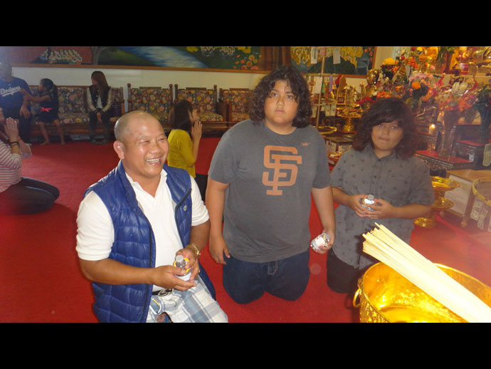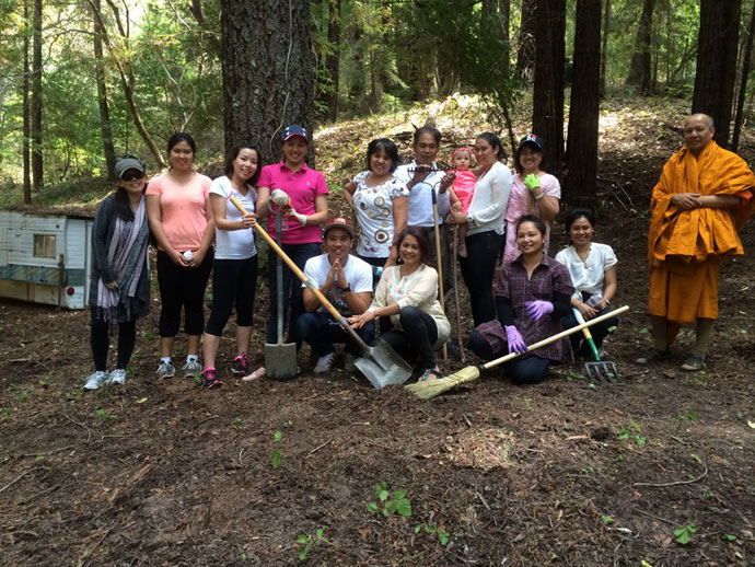 เมื่อช่วงวันเสาร์ที่ผ่านมา ผมมีโอกาสได้ร่วมคณะเดินทางไปร่วมสร้างอาคาร ธรรมสถาน สถานที่ปฏิบัติธรรม ซึ่งเป็นที่ของวัดพุทธประทีป ซานฟรานซิสโก อยู่บนยอดเขา ใกล้เมืองซานตา ครู๊ส มีทั้งหมด ประมาณ 30 ไร่ ทางวัดได้ประกาศแจ้งข่าว ล่วงหน้าหลายเดือนร่วมบริจาคสร้างกุฏิธรรมสถาน สถานที่ปฏิบีติธรรม เมืองซานตา ครู๊ส เพื่อไว้เป็นที่ธรรมปฏิบัติธรรมสำหรับพระภิกษุและประชาชนทั่วไป ที่สนใจในการปฏิบัติธรรม โดยแจ้งว่าจะสร้างกุฏิให้แล้วเสร็จภายใน 1 วัน ตามเวลานัด 26 กรกฏาคม 2557 เวลา 9.00 น. ล้อหมุนจากลานจอดรถ การแต่งกายชุดเดินป่า หรือ Camp ห่างจากนครซานฟรานซิสโก ไปทางใต้ ประมาณ 54 ไมล์ ใช้เวลาในการเดินทาง หนึ่งชั่วโมง กับสี่สิบห้านาที โดยใช้เส้นทาง ฟรีเวย์ 17 หรือจะไปทาง Saratoga ก็ได้ แต่ระยะเวลาการเดินทางประมาณ หนึ่งชั่วโมง กับสิบห้านาที ใกล้กว่า คณะได้แยกย้ายกันไป บางคนเคยไปแล้ว ก็สะดวก คณะนายช่างอุดม ธรรมสิทธิ์ นายช่างใหญ่นำขบวน บุกไปก่อนล่วงหน้า พร้อมกับอุปกรณ์การก่อสร้าง ติดตามด้วย คณะสงฆ์วัดพุทธประทีป ซานฟรานซิสโก นำโดย พระครูวรสิทธิวิเทศ พระมหาบุญมา วรปญฺโญ,พระปัญญา ปญฺญาทีโป พระเด่นชัย คุณสมฺปญโณ ,ดร.บุญเกิด แป้นแก้ว รองประธานสภาวัฒนธรรมไทยแห่งแคลิฟอร์เนียภาคเหนือ นักวิชาการสภา ฯ นายชยวัชช์ ยิ้มสำราญ รองประธานสภาวัฒนธรรมไทยและคณะกรรมการ ,คุณวิไล ปัญญาสิทธิ์, คุณสายทอง (น้อย) แก้วประเสริฐ, คุณสุดารัตน์ ฤทธิ์ประเสริฐ ในส่วนแผนกอาหาร- ส้มตำ สูตรรส Caputino คุณมัญชุภา คุณมินท์ คุณเพ็ญรัศมิ์ ช่อง 3 , คุณผกามาศ, คุณลำดวน สมจิตร์ เจ้าของร้านอู่ทอง ,คุณแคทและ คุณแบนรเดน จากเมือง Mountian vill, คุณดาว Schoenholtz จากมือง Palo Alto, คุณเจนจิตร พัชรปลั่งศรี จากฟรีมอนท์, คุณสุภาพร วิลเลี่ยม จากเมืองซาน บรูโน, คุณวันชัย ช่วงสำโรง เจ้าหน้าที่พยาบาลสถานสถาบันแห่งหนึ่งซานโฮเซ, คุณแอปเปิ้ล โลซาดา นักออกแบบทรงผม ดีไซด์เนอร์ คุณปวีณา Langan, คุณพี่จุฑาทิพย์ แนนท์ แม่ครัวมืออาชีพ ย่านซานตา ครู๊ส นี่เป็นเพียงกลุ่มที่เราได้รู้จักพบหน้าค่าตา รถออกจากวัด ใช้ ฟรีเวย์ 280 s. แล้วมาต่อ 85 s. วิ่งมาเรื่อย Exist Saratoga วิ่งขึ้นเขา เข้าฟรีเวย์ 9 ซานตา ครู๊ส มาจนถึง Exist Pool Dr.-King-Creek วิ่งยาวไปจนถึง Logan Creek ตลอดเส้นทางการเดินทางจากปากทาง ฟรีเวย์ 9 เป็นทางลาดยาง มาถึง Logan เป็นทางลูกรัง 2 ไมล์ ก็จะถึงทางเข้าพื้นที่ของวัด เนื่องจากเราเป็นขบวนสุดท้าย ดูเหมือนจะมาช้า เกือบจะถึง 11.30 น. พอไปถึงเห็นพระคุณเจ้า กำลังฉันเพล พอดี น่าจะสิบเอ็ดโมงอย่างน้อย นายช่างอุดม ธรรมสิทธิ์ กำลังบัญชาการตัดไม้ ส่วนคนอื่น ต่างช่วยกันคนละไม้คน