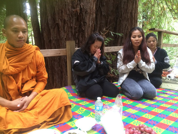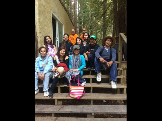 @@@. น่าชื่นใจอยู่เบื้องแห่งความสำเร็จ พี่ศุภวรรณ พิมพ์สกุล หรือพี่อิ๊ดหลังจากที่เป็นโยมอุปถัมภ์ติดตามดูผลการก่อสร้างกุฏิกรรมฐาน บนยอดเขาซานตา ครู๊ส ของ ท่านพระอาจารย์ พระครูวรสิทธิวิเทศ เจ้าอาวาสวัดพุทธประทีป ซานฟรานซิสโก อย่างเงียบมาหลายปี จนกระทั่งทราบข่าว ท่านลงมือดำเนินการก่อสร้างอย่างจริงจัง พาคณะลูกศิษย์ ขึ้นเขาไปสร้าง ปรับปรุงสถานที่ปฏิบัติธรรมอย่างต่อเนื่อง จึงได้แจ้งความประสงค์ขอจองกุฏิ 1 หลัง ในนามร้านอัมรินทร์ และพนักงานทุกคน รวบรวมได้จำนวน 5,000 เหรียญ นำมอบถวายท่านพระครูวรสิทธิวิเทศ เป็นที่เรียบร้อยแล้ว เมื่อวันที่ 27 กันยายน 2557 ทำบุญและฉลองวันเกิดที่ร้านอัมรินทร์ผ่านมา ท่ามกลางพนักงานร่วมแสดงความยินดีกันทั่วหน้า......ข่าวว่าอย่างนั้น.. พระอาจารย์อนุโมทนาขอบคุณผ่านมาทางคอลัมน์นี้ด้วย..