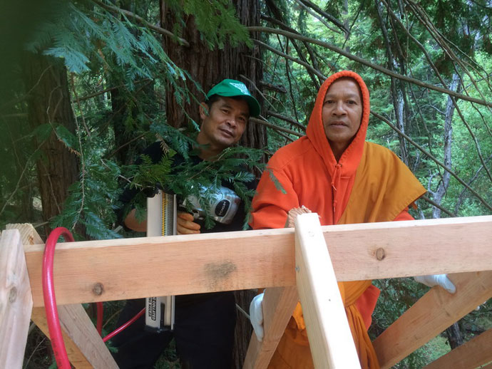 @@@.ข่าวความคืบหน้าในการสร้างกุฏิกรรมฐาน และปรับปรุงสถานที่ปฏิบัติธรรม บนยอดเขาซานตา ครู๊ส นั้น ทางท่านพระครูวรสิทธิวิเทศ เจ้าอาวาสวัดพุทธประทีป ซานฟรานซิสโก ได้กล่าวทีมงานข่าวนายดาบว่า.. กำลังดำเนินการก่อสร้างไปเรื่อย ๆ กุฏิหลังที่ 3 ใกล้จะสร้างเสร็จแล้ว จนกว่าจะครบ 9 หลัง ก่อนจะทำการอุปสมบทพระบวชใหม่ ในช่วงเดือน ธันวาคม 2557 ที่จะถึง สำหรับโครงการปีนี้ พระที่อุปสมบทใหม่ทุกรูป จะต้องออกภาคสนาม สร้างกุฏิกรรมฐาน ไว้เป็นอนุสรณ์ในรุ่นต่อไป.. ด้วย ประกาศรับชายไทย-อเมริกัน อายุ 20 ปี ขึ้นไปเข้ารับการอุปสมบทถวายเป็นพระราชกุศล แด่พระบาทสมเด็จพระเจ้าอยู่หัว เนื่องในวันมหามงคลเฉลิมพระชนมพรรษา 5 ธันวาคม 2557 ติดต่อสมัครที่ วัด 650 307-4506 หรือ 650 615-9528.. การก่อสร้างดำเนินต่อไปเรื่อย ท่านใดอยากจะเป็นเจ้าภาพสร้างกุฏิกรรมฐาน ราคา หลังละ 4,000 เหรียญ, 8,000 เหรียญและ 12,000 เหรียญ ติดต่อสอบถามท่านเจ้าอาวาสได้ทุกเวลา.. ขณะนี้มีผู้จองเป็นเจ้าภาพและร่วมบริจาค พอสมควร หลังจากสร้างครบทุกหลังจะเชิญพุทธศาสนิกชนทุกท่านขึ้นเขา พร้อมกันถวายกุฏิกรรมฐาน ในช่วงนี้ ต้องการอาสาสมัคร ช่วยสร้าง ขึ้นเขาทุกวันเสาร์ วันจันทร์ วันอังคาร ใครว่างจะไปช่วยแจ้งมาที่วัด.. จะได้จัดรถไปรับ..ถึงบ้านเลย..