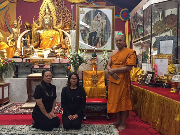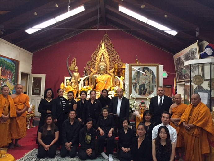 ในการประชุมมหาเถรสมาคม ครั้งที่พิเศษ 2/2559 เมื่อวันที่ 14 ตุลาคม 2559 ประธานกรรมการมหาเถรสมาคม ได้แจ้งให้ที่ประชุมทราบตามประกาศสำนักพระราชวังว่า พระบาทสมเด็จพระเจ้าอยู่หัว พระปรมินทรมหาภูมิพลอดุลยเดช มหิตลาธิเบศรามาธิบดี จักรีนฤบดิน สยามินทราธิราช บรมนาถบพิตร สวรรคต เมื่อวันที่ 13 ตุลาคม 2559 เวลา 15 นาฬิกา 52 นาที ณ โรงพยาบาลศีริราช ด้วยพระอาการอันสงบ สิริพระชนมายุ 89 ทรงครองราช สมบัติ ได้ 70 ปี ดังที่ทราบกันแล้ว ได้ส่งผ่านมายังสมัชชาสงฆ์ไทย โดยพระเดชพระคุณ พระเทพพุทธิวิเทศ ประธานสมัชชาสงฆ์ไทยในสหรัฐอเมริกา มีบัญชาให้ พระครูสิริอรรถวิเทศ เลขาธิการ แจ้งข่าววัดไทยทั่วอเมริกา ให้ปฏิบัติมติของมหาเถรสมาคม ให้แต่ละวัดจัดโต๊ะหมู่บูชา ประดิษฐาน พระบรมรูปฉายาลักษณ์ พระบรมสาทิสลักษณ์ พระบาทสมเด็จพระเจ้าอยู่หัว พระปรมินทรมหาภูมาพลอดุลยเดช ประกอบพิธี บำเพ็ญกุศลสวดพระอภิธรรม ตามพิธีบำเพ็ญกุศล เจริญสมาธิภาวนา ชักชวนประชาชนร่วมกิจกรรม บำเพ็ญกุศลสวดมนต์ รักษาศีล ฟังธรรม และปฏิบัติธรรมเป็นต้น