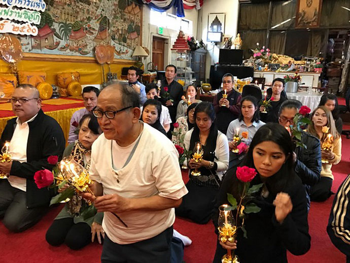 เยี่ยมชม..สำนักปฏิบัติธรรม “วรสิทธิ Meditation Center เมืองโบล์เดอร์ครีค เขตติดต่อระหว่างเมืองซานตา ครู๊ส รัฐแคลิฟอร์เนียภาคเหนือ สถานที่ปฏิบัติธรรมแห่งนี้ได้ยินชื่อมาสองสามปีแล้ว แต่มาช่วงระยะหลังได้ทราบความเคลื่อนไหวมีการสร้างอาคารกุฏิกรรมฐานขนาดเล็ก จำนวน 9 หลัง สร้างห้องน้ำ สร้างห้องอาหาร สร้างโน้นสร้างนี้ ก็ยังไม่มีโอกาสเดินทางไปเยี่ยมสักครั้ง ก็เลยติดต่อประสานงานไปยัง ท่านพระครูวรสิทธิวิเทศ เจ้าอาวาสวัดพุทธประทีป ซานฟรานซิสโก เพื่อขอโอกาสติดตามเดินทางไปร่วมขบวนเยี่ยมสถานที่ปฏิบัติธรรมบนยอดเขาโลแกนครีค หลังจากนัดแนะกับท่านเจ้าสำนัก พระครูวรสิทธิฯ แล้ว ท่านแจ้งว่าให้เตรียมอุปกรณ์การเดินทาง เช่นเสื้อผ้า ต้องทะมัดทะแมง หนาพอสมควร ป้องกันความหนาว รองเท้าต้องพอเหมาะพอเจาะ ถุงเท้า ระหว่างการเดินทางขึ้น อาจจะลื่นล้มได้ง่าย ถุงมือ ถุงพลาสติก และอีกอย่างช่วงนี้ฝนตกหนักมาก ต้องระวังเป็นพิเศษ สถานที่แห่งนี้ซึ่งมีความสูงไม่น้อยกว่า 5000 ฟุต วัดระดับจากข้างล่าง ถึงยอดเขาท่านว่าอย่างนั้น เวลา 10.00 น.วันที่ 7 กุมภาพันธ์ 2560 รถจะออกจากวัด พร้อมบอกว่าไม่ต้องมาที่วัดไปรอดักที่ปากทางเลย ขึ้นเขาเลย เส้นทางการเดินทางอาจจะสะดวกกว่า วันนี้มี นายชยวัชช์ แย้มสำราญ ประธานสภาวัฒนธรรมไทยแห่งแคลิฟอร์เนียภาคเหนือ จะติดตามขึ้นไปด้วย จะได้พูดคุยวางแผนการทำงานรวดเร็วขึ้น ตามเวลานัดหมายทีมงานนายดาบ มองไปเห็นรถบรรทุกแท๊งค์น้ำขนาดใหญ่ บนฟรีเวย์ 9 วิ่งอยู่ข้างหน้า นึกในใจน่าจะใช่แท๊งค์น้ำที่พระอาจารย์ สั่งไว้ วิ่งค่อยๆ ตามดู เห็นรถเลี้ยวเข้าไปใน King Creek Road ยิ่งมีความมั่นใจยิ่งขึ้น รถวิ่งช้าลง ตามถนนไปเรื่อยๆ เราคอยขับรถตามไปห่างๆ รถบรรทุกดังกล่าวเลี้ยวแว๊บเข้าไปที่ Logan Creek Dr. นึกในใจอีกครั้ง ใช่แน่ วิ่งไปอีกประมาณ 2 ไมล์ รถคันดังกล่าวก็ไปจอดนิ่งบริเวณปากทางขึ้นสำนักปฏิบัติธรรม เห็นคนขับมองซ้ายขวา เพื่อจะหาใครสักคน ในช่วงนั้นประมาณ 10.45 น.เข้า ยังไม่เห็นมีใครเลย ทีมงานนายดาบ เลยเข้าไปถาม คนขับได้ความนำแท๊งค์น้ำมาให้ไว้บริเวณ สถานที่แห่งนี้ บอกให้คนขับรถบรรทุกแท๊งค์น้ำรอ Master ก่อน กำลังเดินทางใกล้จะถึงแล้ว อีกแค่ 5 นาที สังเกตรอบๆ ถนนน้ำนองเจิ่ง ไหลลงมาจากภูเขาเป็นแถวเป็นแนว ฝนเริ่มหยุดแล้ว แต่น้ำไหลลงมาอย่างกับคลองอยู่บนภูเขา เมื่อทุกท่านพร้อมแล้ว รถบรรทุกเอาแท๊งค์น้ำลงจากคนเดียวจริงๆ เก่ง มาก จากพวกเราไป เห็นท่านพระครูวรสิทธิฯ ได้ปรึกษาหลายคนวางแผนว่าจะต้องนำแท๊งค์น้ำขึ้นเขาให้ได้ จะได้เก็บน้ำไว้ให้มากที่ส