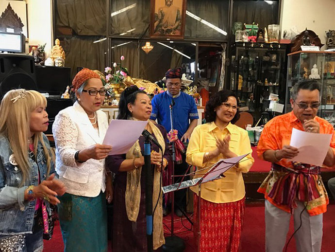 @@@คนไทยไม่ลืมประเพณีไทย วัฒนธรรมไทยกระจายทั่วนครซานฟรานซิสโก ข่าวเมื่อวันสงกรานต์ที่ผ่านมา ทางวัดได้จัดกิจกรรมสืบสานงานวันสงกรานต์ ตามวัดไทยจะมีชาวพุทธเดินทางไปร่วมงานแน่นทุกวัด ถึงแม้ฝนจะตก จะแดดจะออก ต่างก็ให้ความสนใจน้อยกว่าการเดินทางไปร่วมทำบุญตามประเพณีของตนอย่างเคร่งครัด เป็นสิ่งที่น่าชื่นใจ ประเพณีไทยวันสงกรานต์ นายชยวัชช์ ยิ้มสำราญ ประธานสภาวัฒนธรรมไทยมาแต่เช้า คอยต้อนรับขับสู้ ทักทาย เพื่อนๆ พี่น้องชาวไทยอย่างทั่วถึง ส่วน ดร.บุญเกิด แป้นแก้ว นักวิชาการสภาวัฒนธรรมไทย เสร็จสรรพภารกิจ รีบไปร่วมงานทันที ทันเวลาบำเพ็ญกุศลไปให้ผู้ล่วงลับไป ทุกอย่างผ่านด้วยความเรียบร้อยอีกปี