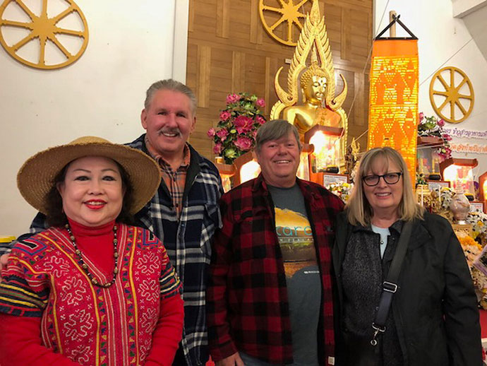 ....ทางเหนือของรัฐเนวาด้า เมืองรีโน Auburn คาร์สัน ซิตี้ เลคตาโฮ มีแม่น้ำเซียร่าไหลผ่าน ถือว่าเป็นเมืองหนึ่งในการขุดหาแล่ทองคำ ซึ่งมีจำนวนมากที่ไหลลงมาจากภูเขานับล้านปีสร้างร่ำรวยให้กับประชาชนผู้มีอาชีพ ในการหาแร่ทองคำไม่น้อยทีเดียว ข่าวเล่าว่า แร่ทองคำทั้งหมด อยู่ใต้พื้นดาบาล ใต้พื้นดิน ยังไม่หายไปไหน เพียงรัฐบาล ยังไม่อนุญาต ให้ดำเนินการขุดต่อ กลัวภูเขาทลาย ประชาชนแถบนั้น ที่เป็นเจ้าของทีดิน บางพื้นที่จะมีสายแร่ทองคำผ่านทางรัฐบาลจ้องเป็นตาเขม่นเลย อย่าขายเป็นอันขาด จะเว้นคืนที่ดิน เป็นของรัฐบาลครับวันดี ค่อยไปขุดกัน รวยด้วยกัน เลือดสุพรรณ ทำนองที่ว่า ในน้ำมีปลาใต้พื้นปฐพีภูเขามีทองคำ ใครมีที่ดินจะมีราคาเป็นทองคำโดยไม่รู้ตัว ฝากบอกไว้ล่วงหน้า.. ตระเวนขับรถไปจนถึงเมืองเลตตาโฮ สองฝั่งข้างถนนไม่ต้องพูด ทั้งหิมะทั้งรถคอยๆ เคลื่อนไปอย่างช้า พวกเราได้เห็นหิมะเต็มตาก็คราวนี้แหละ บางคนงัดตากล้องขึ้นกดชัตเตอร์ สองคนละแฉะสองแฉะ เก็บภาพสวยๆ ไว้เป็นที่ระลึก สองทางข้างเป็นบรรยากาศ หิมะติดยอดต้นสนเรียงรายสองข้างทางขาวโพลนสวยแสดงว่าเพิ่งตกลงเมื่อช่วงเช้ามืดขอวันนี้นี่เองหยุดหาที่สักคืนไอกลิ่นหิมะหอมตลบอลอวลไปทั่งเมืองเลคตาโฮ ที่พักก็แพงหูฉี่ สนนราคาแอบถามเท่าไร ทางเจ้าหนักงานตอบว่า คืนละ 59 เหรียญขึ้นอยู่ที่จังหวะ เป็นการเทศกาลที่พักจะแพงมากขึ้น 99 เหรียญจนกระทั่ง 299 เหรียญ ขอแนะนำในช่วงนี้จองโรงแรมล่วงหน้าจะดีมากจะได้ราคาที่ถูกครับ.. ก็มีบางท่านไปซื้อบ้านพักตากอากาศ ในยามนี้ เพื่อจะมาเล่นหิมะโดยเฉพาะราคาช่วงนี้อาจจะแพงหลังละเป็นล้านเหรียญขึ้นไปซื้อลำบากหน่อย.. เล่นหิมะสักพัก วิ่งรถไปเมืองริโนดีกว่า ยังไงก็มีวัดไทย สามารถไปพักนอนสักคืน 2 คืน ได้เรียกเพื่อนทีมงาน นายดาบ ไปพักวัดที่รีโนเถอะดีกว่าตอนเช้าจะได้ทำหน้าที่ ได้ร่ายงานข่าวไปยังผู้อ่านที่ไม่สามารถเดินทางไปร่วมงานได้ไปถึงวัดประมาณ มีพระคุณเจ้าออกมารับเชื้อเชิญเข้าไปข้างใน เลยถามพระครูวรสิทธิวิเทศ มาถึงหรือยังท่านมาถึงแล้ว สักพัก กำลังบริหารจัดการสถานที่อยู่อุโบสถ มีพระคุณเจ้าหลายรูปลูกศิษย์วัดหลายคน กำลังช่วยกันจัดประดับประดา ตบแต่งมีทั้งผ้ายันต์ พระเจ้าตากสินมหาราช ผ้ายันต์นางกวัก ผ้ายันต์พระนารายณ์ทรงครุต ของท่านเจ้าคุณธงชัย วัดไตรวิทยารามเป็นต้น เพื่อความเป็นระเบียบสวยงาม เนื่องจากเป็นการจัดงานต้อนรับปีใหม่ 2561 มีพิธีทำบุญตักบาตร และพิธีสะเดาะเคราะห์ เสริมสิริมงคล ดวงชะตาชีวิต ช่วงปีใหม่ ได้เวลาอ