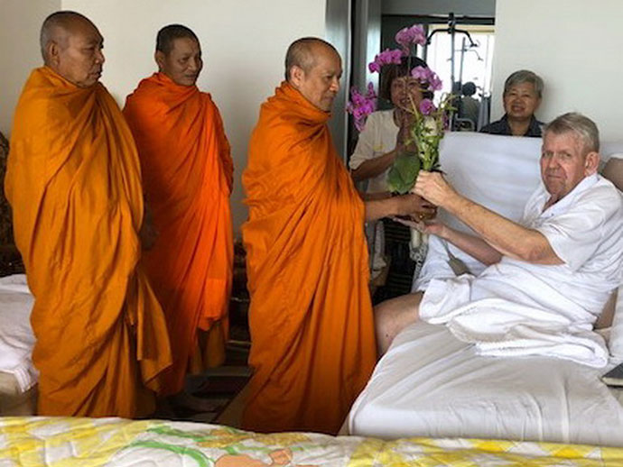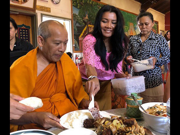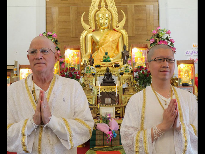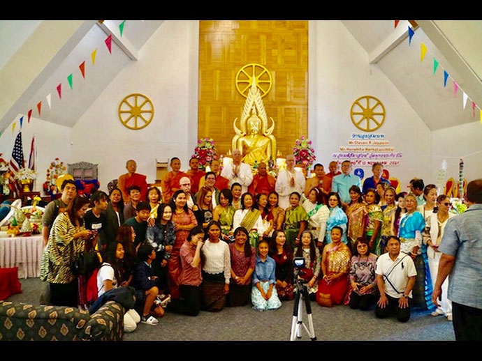 บุญหล่นทับแบบไม่ตั้งตัว คุณแม่จินดา พลอยแสงงาม คุณรุจิลาภา (คุณผิง เจ้าของสูตรขนมครกชื่อดัง 100 ล้าน อย่าลืมแวะไปอุดหนุน) พัฑฒนะและทีมงานร้าน แลคซี แผนกอาหาร และแผนกขายส่งรายใหญ่แห่งนครลอสแอนเจลิส พร้อมกันเป็นเจ้าภาพถวายภัตตาหารเพล แด่พระครูวรสิทธิวิเทศ เจ้าอาวาส วัดพุทธประทีป ซานฟรานซิสโก พร้อมกับพระติดตาม ที่แวะไปเยี่ยมสอบถามสารทุกข์สุกดิบ เมื่อวันที่ 11 พฤษภาคม 2561 คราวเดินทางไปปฏิบัติศาสนกิจ เป็นกรรมการคุมการสอบบาลีสนามหลวง ที่วัดไทยลอสแองเจลิส เมื่อวันที่ 9-11 พฤษภาคม 2561 ท่านเจ้าอาวาสฝากอนุโมทนาขอบคุณ ขออำนวยอวยพรให้คุณแม่จินดา พลอยแสงงาม มีอายุมั่นขวัญยืน อยู่คู่กับลูกหลานตลอดไป และคุณผิง เจ้าของสูตรขนมครกชื่อดัง 100 ล้าน ทราบว่ามีหลายท่านเดินทางมาจากที่ไกลอุดหนุน หมดเกลี้ยงทุกสัปดาห์ อยู่กันตลอดไป.. และท่านอื่นๆ ที่มีส่วนร่วมในครั้งนี้ด้วย มีแต่ความสุข ความเจริญก้าวหน้าอย่างไม่หยุดยั้ง.ตลอดไป.. @@@. ชาวไทยเมืองริโน คึกคัก กันเต็มที่ เป็นประวัติศาสตร์ เมื่อ คุณสตีฟ แจ๊บสัน ผู้มีส่วนร่วมในการสร้างวัดพุทธประทีป ริโน เมืองสปาร์ค รัฐเนวาดา ผู้อยู่เบื้องหลังแห่งความสำเร็จ สละความสุขส่วนตัว เข้าศึกษาพระพุทธศาสนา เข้าอุปสมบท เป็นพระในพระพุทธศาสนา เป็นอันเตวาสิก ของท่านพระครูวรสิทธิวิเทศ ประธานคณะกรรมการบริหารอำนวยสร้างวัดพุทธประทีป ริโน เมื่อวันที่ 13 พฤษภาคม 2561 ที่ผ่านมา พร้อมกับมีผู้อุปสมบทอีก 1 ท่านซึ่งเป็นขาวพุทธจากประเทศอินโดนีเซีย ซึ่งมีความตั้งใจเช่นกัน เป็นชาวพุทธต่างชาติ ได้เริ่มเข้ามาศึกษาพระพุทธศาสนาอย่างจริงจัง ข่าวว่าอย่างนั้น.. ข่าวการอุปสมบทครั้งนี้ได้กระจายไปทั่วเมือง จนถึงนครซานฟรานซิสโก นายชยวัชช์ ยิ้มสำราญ ประธานสภาวัฒนธรรมไทยแห่งแคลิฟอร์เนียภาคเหนือ พร้อมกับคณะ ได้เดินทางไปล่วงหน้า เข้าร่วมงาน กระชับความสัมพันธไมตรี กับพี่น้องชาวไทยเมืองริโน โดยมี นายสมบูรณ์ ประจัณบาน ประธานสภาวัฒนธรรมไทยรัฐเนวาด้า ภาคเหรือ เมืองรีโน ให้เกียรติเดินทางมาร่วมในพิธีจนเสร็จลุล่วงไปด้วยดี มีพี่น้องชาวไทยจำนวนมาก ออกมาร่วมงานครั้งนี้ คงจำกันไปอีกนาน ส่วนท่านที่ได้บุญมากที่สุด น่าจะเป็นพี่กรรณิการ์ แจ๊บสันและครอบครัว พี่เล็กนั่นแหละ...