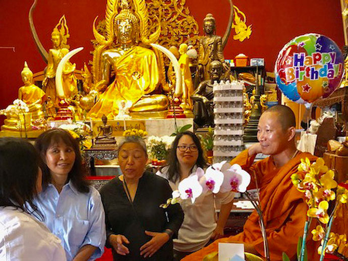 5.2 โครงการธรรมสัญจรการสืบทอดเชื่อมโยงระหว่างสถาบันครอบครัว องค์กรศาสนา แนวทางและวิธีการต้องผสมผสานกันไป แค่ดูสังคมในอเมริกาเองก็มีปัญหามาก เพราะพ่อแม่ยังยึดถือประเพณีเดิมๆ แต่ลูกหลานที่เกิดและเจริญเติบโต ใน 2 วัฒนธรรมพ่อแม่พยายามมอบความเชื่อของตนให้ แต่ลูกหลานพยายามต่อต้าน จึงเป็นโอกาสเหมาะที่พระสงฆ์สามารถทำความเข้าใจในส่วนนี้ได้ วิธีการคือเมื่อท่านพร้อมที่จะรวมกลุ่มในครอบครัว เพื่อนบ้าน พระสงฆ์จะนำหนังสือเทปธรรมะ และแบ่งกลุ่มสนทนาทำความเข้าใจ