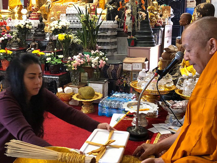 @@@. ทำบุญวันเกิดอย่างเงียบๆ นางสาวเพ็ญรัศมิ์ เจริญเนติศาสตร์ รองประธานวัฒนธรรมไทยแห่งแคลิฟอร์เนียภาคเหนือ ฉายเดี่ยวทำบุญ ถวายสังฆทานถือเครื่องอัฐบริขารของพระสงฆ์ น้อมนำถวายแด่พระคุณเจ้าด้วยความตั้งใจ อานิสงค์ย่อมไม่ไปไหนเสียย่อมแก่ตนเอง นอกจากนี้ยังได้อุทิศส่วนบุญไปแก่คุณแม่ผู้ให้กำเนิดด้วย เป็นตัวอย่างการกตัญญูกตเวที