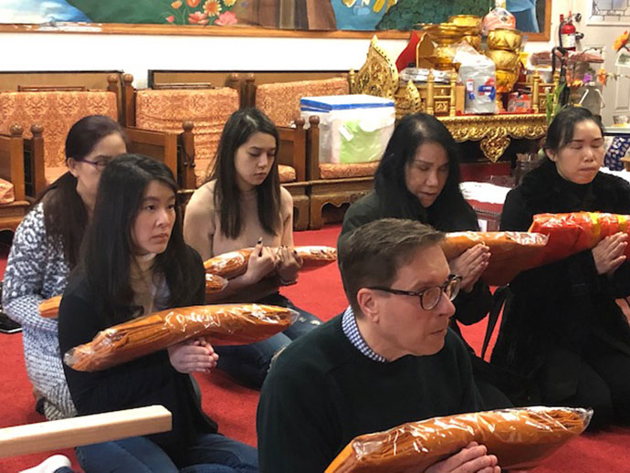 @@@,เพื่อความเป็นสิริมงคลของร้านและของตนเอง และพนักงานทุกท่าน คุณกรรณิการ์ เกิดชัย น้องติก เจ้าของธุรกิจความงาม แถวซานโฮเซ ปิดร้านกราบอาราธนาพระคุณเจ้า วัดพุทธประทีป ซานฟรานซิสโก และคณะสงฆ์มาเจริญพระพุทธมนต์ เป็นกรณีพิเศษ เมื่อวันที่ 3 กุมภาพันธ์ 2562 โดยมีพระครูวรสิทธิวิเทศ เป็นประธานในพิธีเจริญพระพุทธมนต์ ได้ลูกศิษย์ฝรั่ง เข้าวัดอีก..