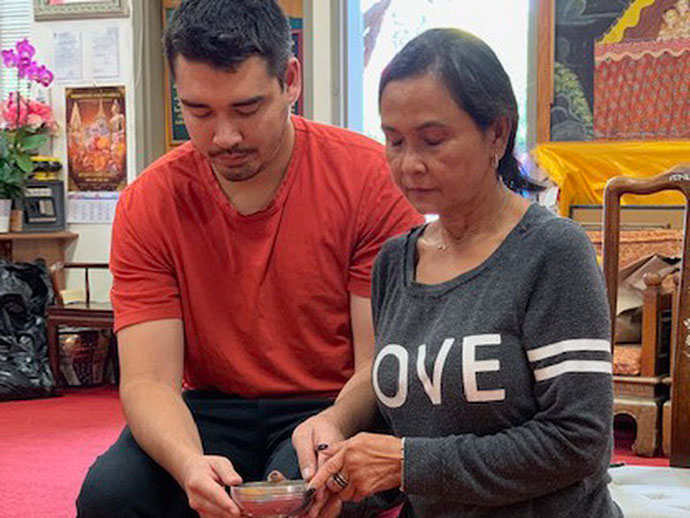 @@@ ลาก่อนซานฟราน อาจารย์ เนาวรัตน์ หาญกล้า อดีตอาจารย์โรงเรียนแห่งหนึ่งแถวจังหวัดชลบุรี กราบลาพระสงฆ์ กราบลาพระพุทธชินราช พระประธานที่วัดพุทธประทีป ซานฟราน เมื่อช่วงบ่ายวันอาทิตย์ที่ผ่านมา ก่อนเดินทางกลับชั่วคราวสัก 6 เดือน โดยมี คุณครูวรางรัตน์ หาญกล้า ลูกสาวพร้อมกับน้องซอไปส่งคุณยายถึงสนามบิน ความผูกพันความระลึกถึงคงมีมากทีเดียว