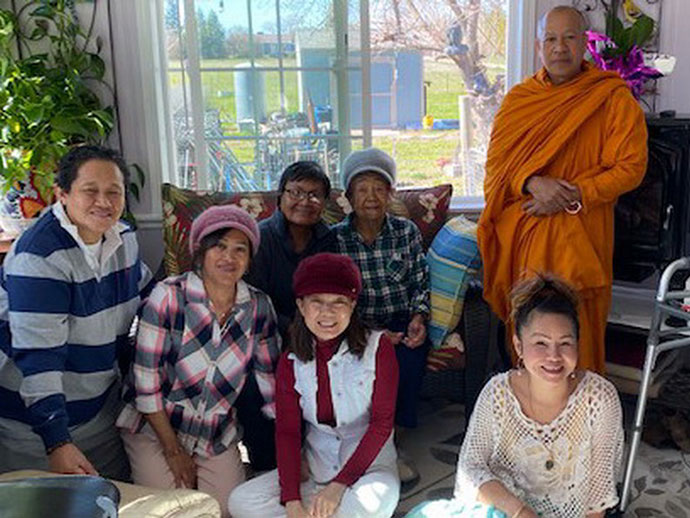 @@@.เพิ่มขวัญกำลังใจ มากขึ้น คุณแม่ทองดี วัย 87 ปี บ้านพักอาศัยกับลูกๆ ที่เมืองซานตา ครู๊ส อายุอานามเพิ่มลูกๆ ย้ายคุณแม่ไปอยู่ที่เมือง Winton กับลูกสาวคนโต พี่โสภี ใกล้เมือง สคาเม้นโต้ ห่างจากนครซานฟรานซิสโก เกือบสองชั่วโมงครึ่งท่ามกลางบรรยายกาศ อากาศดี อาจจะห่างไกลวัดไปหน่อยตามปกติแล้วคุณแม่ทองดีมีความสนิทสนมกับท่านพระครูวรสิทธิวิเทศ เจ้าอาวาสวัดพุทธประทีป ซานฟรานซิสโก ลูกติ๊กๆ เพื่อนๆ หลานๆ เลยกราบอาราธนาท่านพระครูวรสิทธิวิเทศ และคณะสงฆ์แวะมาโปรดเยี่ยมเยียนเมือง Winton เมื่อช่วงเช้าของวันที่ 24 กุมภาพันธ์ 2563 ตามเวลานัดหมาย ท่านพระครูวรสิทธิวิเทศและคณะ ออกเดินทางจากนครซานฟรานซิสโก เมืองซาน บรูโน ในเวลา 8.30 น. ด้วยรถแวนด์สีขาวขนาด 8 ที่นั่งวิ่งขึ้น ฟรีเวย์101 N วิ่งผ่านเมืองเซ้าส์ซานฟรานซิสโก ผ่านตัวเมืองซานฟรานซิสโก ท่ามกลางบรรยากาศเย็นสบาย การจราจรอยู่ในช่วงไม่แออัดมากมากนักวิ่งไปได้เรื่อยๆ ผ่านตัวเมือง ซานฟราน ดูตึกราม อาคารบ้านช่องของประชาชนบางตึกสูงตระหง่าน สวยงาม เหมาะสม เป็นเมืองท่องเที่ยวเป็นเมืองหน้าด่านเป็นเมืองชายทะเล วิ่งข้ามสะพานเบย์บริดจ์สวยงามสีขาวสายลวดสริงค์ เป็นแถวเป็นแนวเก็บภาพสวยๆ ไว้เป็นที่ระลึกรถแวนด์วิ่งผ่านเมืองเบอร์คเลย์ ผ่านริชมอนด์ ผ่านเมืองวาเลโฮ เข้าแฟฟิวส์ เดวิด ผ่านเข้าเมืองสคาเม้นโต้ โค้ง ออกไปทางฟรีเวย์ 99 เซ้าส์ ลัดเลาะไปตามท้องถิ่นเห็นป้ายบอก Winton ยินดีต้อนรับนึกในใจคงใกล้บ้านแล้วขับรถลัดเลาะไปตามถนนของหมู่บ้านที่ถูกจัดเป็นสัดเป็นส่วนเป็นล็อก ท่ามกลางบรรยากาศหอมกลิ่นไอ ธรรมชาติกลิ่นของต้นหญ้า กลิ่นไอของดอกไม้นานาพรรณตามท้องถนนเรียงรายสุดลูกหูลูกตา จนกระทั่งรถแวนด์สีขาวนำคณะ ของพระครูวรสิทธิวิเทศ มาถึงบริเวณบ้านของคุณแม่ทองดี มีคุณติ๊ก คุณโสภี และเพื่อนๆ ออกมาถวายการต้อนรับกราบอาราธนานิมนต์ขึ้นบ้าน คุณแม่ทองดีเห็นท่านพระอาจารย์ พระครูวรสิทธิวิเทศ เดินเข้ามา พนมมือถวายการต้อนรับท่านเข้ามานั่งใกล้ๆคุณแม่ทองดี และมอบดอกไม้ 1 ต้น เป็นขวัญกำลังใจ คำถามแรก คุณโยมเป็นอย่างไรบ้างแล้วท่านสบายดีน่ะไม่ได้พบกันนานบนเขาเป็นอย่างไรบ้างต่างคนต่างสอบถามสารทุกข์สุกดิบซึ่งกันและกันภายในบ้านมีลูกหลาน บุคคลเคารพนับถือเพื่อน เช่น พี่ก้อย พี่โอ้ พี่วิรัตน์ น้องตุ๊กน้องเจี๊ยบและอีกคนจำชื่อได้บ้างไม่ได้บ้าง เพียงเห็นหน้าก็รู้จักกันแล้วทักทาย กล่าวคำว่าสวัสดี ดีใจมีโอกาสได้มีวันนี้ถ้าไม่มีวันนี้แล้วไม่รู้ว่าจะมีวันไหน คุณแม่ทองดี ดีใจที่ลูกจัดโปร