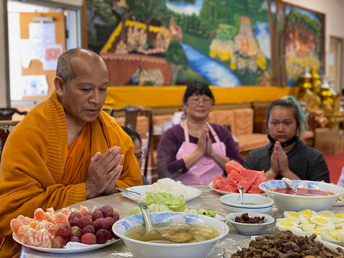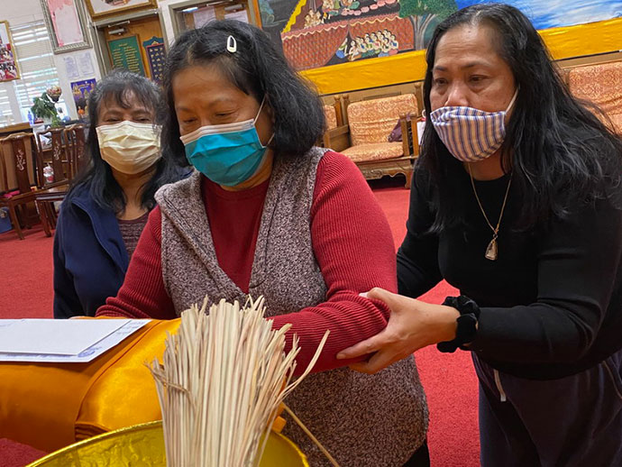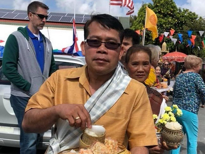 @@@. วันแห่งการรอคอยการเปิดเมือง ช่วงโควิด 19 คุณสุมาลี ศรีศวร ควงพี่ถนอมจิต ลิดโตปาด และน้องป้อมอีกหนึ่งคน ขับรถลัดเลาะจากเมืองฮาฟมูนย์เบย์ เข้าถวายสังฆทานทำบุญพิเศษในช่วงสงกรานต์ วันที่ 21 เมษายน 2563 โดยมีพระครูวรสิทธิวิเทศ เจ้าอาวาสประกอบพิธีให้ซาบซึ้งใจเลย อีกคนหนึ่งดูแลลูกบ้านเป็นอย่างดี คุณไพรัช แฮมมิลตัล หรือกำนันหญิงจากเมืองซานตา ครู๊ส รับอาสาสั่งขนมหวาน อาหารหลายร้อยเหรียญ เช่น ลอดช่อง ข้าวเหนียวปิ้งใส้เผือก ข้าวเหนียวไก่ทอด ขนมต้ม ราคาหลายร้อยเหรียญ นำไปแจกลูกบ้านหลายเมืองตั้งแต่เช้าจนถึงบ่ายสี่โมงเย็น สร้างความประทับใจให้กับลูกบ้านไม่น้อยทีเดียว ลงสมัครคราวหน้า ตำแหน่งกำนันไม่ไปไหนเสีย ตีตราจองไว้ได้เลย สมควรได้รับการยกย่องเป็นกำนันหญิงประจำเมืองซานตา ครู๊ส ไม่ทราบท่านผู้ใหญ่บ้านหญิงหายไปไหน น่ะ โชว์หน่อย ใครมีอะไรดีๆ มาบอกเล่ากันกันบ้าง คลายเครียดได้เลย ในช่วงโควิด19 พบกันใหม่ สวัสดี