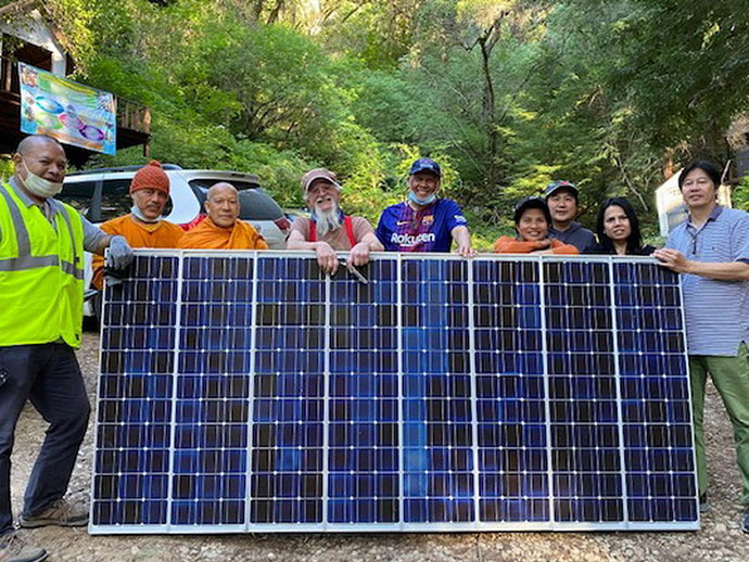 @@@. นำทีมบุกเขาซานตาครู๊ส เป็นอาสาสมัคร นายชยวัชช์. ยิ้มสำราญ ประธานสภาวัฒนธรรมไทยแก่งแคลิฟอร์เนียภาคเหนือ คุณผกามาศ มิตรวิเชียร รองประธานวัฒนธรรมไทยและคณะ นำอาสาสมัคร คุณลักษณา ช่วงเปีย หรือน้องปุ๊กกี้ เจ้าธุรกิจหลายสาขา คุณบุญเลิศ เลาะเงิน คุณไนท์ คุณวันชัย ช่วงสำโรง ครูอ้อย ครูแทน น้องเมย์ คุณสตีฟ เข้าช่วยงานติดตั้ง Solar System ร่วมกับพระสงฆ์อีกหลาย เช่นพระครูวรสิทธิวิเทศ พระครูประโชติพุทธิคุณ ภูริปญฺโญ ภิกขุ ทำความสะอาดเป็นเรียบร้อย เพื่อความพร้อมในการตั้งแต่ระบบโซ่ลา อีกไม่นานทางวัดเราก็จะได้มีไฟฟ้าใช้ เพื่อความสะดวกยิ่งขึ้น รองรับพุทธศาสนิกชน ที่จะเดินทางชมสถานที่ปฏิบัติธรรม วรสิทธิ ในช่วงฤดูร้อนที่จะถึงนี้ ท่านใดสนใจจะเป็นอาสาสมัครแจ้งความประสงค์ไปที่วัดพุทธประทีป ซานฟรานซิสโก โดยตรงจะได้รับข้อมูลที่ถูกต้อง