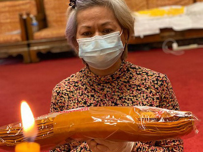@@@. เก็บตัวเงียบอยู่แต่ในบ้านช่วงควบคุมการแพร่ระบาดของโควิด 19 คุณยายบรรจง ทรัพย์สิน อายุ 97 ปี ไม่ได้ออกไปไหนหลานบอกไว้ไม่ให้ออกไปไหนกลัวจะไปติดเชื้อโควิด ด้วยความเป็นห่วงคุณยายและไม่อยากให้พบใครด้วย คุณก็เลยอยู่บ้านคนเดียวโดยวิทยุโทรทัศน์เป็นคู่ใจ เพื่อน ๆ และคนที่รู้จักกันเคารพนับถือโทรสอบถามด้วยความห่วงใยเช่นกัน ใจเราถึงกันไม่น่ามีปัญหาอะไร อีกท่านหนึ่ง คุณแม่ระริน จิรชัยสกุล ช่วงนี้อยู่กับเย้าเฝ้าแต่เรือน ถือโอกาสใช้เวลาว่างให้เป็นประโยชน์เย็บผ้าหน้ากากอนามัย ไว้จำหน่ายในราคาการกุศลเพื่อนๆ รุ่นราวคราวเดียวกันแอบจับจองเป็นเจ้าหลายชิ้นเพราะว่ามีความจำเป็นต้องสวมปิดปากปิดจมูกเพื่อป้องกันการแพร่ระบาดของเชื้อร้าย คุณแม่ระรินว่างจากการทำงานก็ติดตามเพื่อนรุ่นน้องแวะมาทำบุญเป็นครั้งคราวส่วนเพื่อนรุ่นพี่ที่อยู่ร่วมอาคารเดียวกันคุณยายสังเวียน แก้วดวงเล็ก อยู่บ้านพักผ่อนไปได้ออกไปไหนใครโทรมาก็รับโทร คิดถึงกันเสมอ