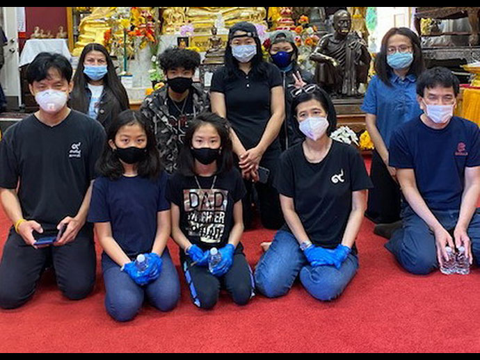 กลุ่มแม่บ้านวันจันทร์เริ่มคึกคักกันเตรียมพร้อมรอรับการประกาศเปิดเมืองอย่างเป็นทางการ รวมตัวน้อมนำภัตตาหารมาถวายพระคุณเจ้าเป็นกรณีพิเศษ ในช่วงบ่ายจัดกิจกรรมล้างพรมภายในอุโบสถ ช่วยกันยกสิ่งของเก้าอี้ โซฟา โต๊ะหมู่บูชา เพื่อให้บริเวณภายในไม่มีสิ่งของกีดกั้นเพื่อให้การทำงานอย่างมีประสิทธิภาพคนไม้คนละมือ ประเดี๋ยวเดียวงานทุกอย่างเรียบร้อยเช่น คุณแม่ระริน จิระชัยสกุล คุณสุนี เนฟฟ์ คุณอำไพ สังข์ยิ้มพันธ์ คุณน้อย บันลือทรัพย์ คุณกิ่ง คุณแหม่มๆ และน้อง Bart คุณยุพา แป้นน้อย คุณถวิล แจงจิรวัฒน์ เป็นต้น เป็นการร่วมมือกันทำความสะอาดและเป็นการทำลายเชื้อโรคอาจจะติดใต้พรมก็ได้ เป็นการความสะอาดครั้งยิ่งใหญ่ในช่วงภาวะโควิด19 กำลังแพร่ระบาด ทุกคนทุกท่านต่างมีความห่วงในสุขภาพของพระสงฆ์และพุทธศาสนิกชนทุกท่านที่เดินทางมาทำบุญที่วัดการทำบุญทำความสะอาดในครั้งนี้เป็นการสร้างความสามัคคีได้อย่างดียิ่งถือว่าเป็นต้นแบบในการสร้างดีอีกอย่างหนึ่ง