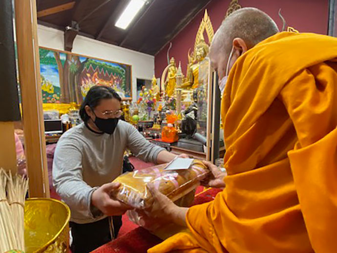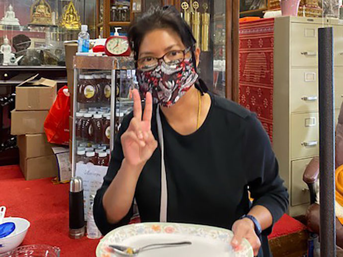 ข่าวสภาวัฒนธรรมไทยแห่งแคลิฟอร์เนียภาคเหนือ นายชยวัชช์ ยิ้มสำราญ ประธานสภาฯ ร่วมกับคณะลูกศิษย์วัดพุทธประทีป ซานฟรานซิสโก ขออนุญาตจากท่านพระครูวรสิทธิวิเทศเจ้าอาวาส ตรวจเข้มทุกคนที่เดินทางเข้ามาที่วัด จะสนทนาหรือทำบุญถวายสังฆทาน หรือมาซื้ออาหารการกุศล ภายในอุโบสถ์ ชั้นเดียวต้องผ่านการตรวจวัดอุณหภูมิทุกคน และใช้เจลล้างมือพร้อมกระดาษ ซึ่งทางสภาฯ เตรียมพร้อมไว้ พวกเรามีความห่วงใยในสุขภาพของพระสงฆ์เป็นอย่างยิ่ง ซึ่งเป็นที่เคารพนับถือของพุทธศาสนิกชนทุกรูปที่เดินทางมาที่วัด ขอความร่วมมือพี่น้องชาวไทยทุกท่านที่เดินทางมาที่วัดด้วยครับ คงจะได้รับบุญกันทั่วหน้า ทุกวันอาทิตย์จะมีเจ้าหน้าที่ลูกศิษย์วัด เจ้าหน้าที่ยองสภาวัฒนธรรมไทย เช่น คุณผกามาศ มิตรวิเชียรรองประธานสภาฯ และคณะกรรมการของสภาฯ จะเดินทางมาอำนวยความสะดวกด้วยฝากขอความร่วมมือทุกท่านพบกันวันอาทิตย์ครับ ทีมงานข่าวนายดาบ ดีใจที่ทางสภาฯ มีส่วนเข้าไปเสริมพลัง ช่วยเหลือทางวัดอีกส่วนหนึ่ง เป็นการป้องกันเชื้อร้ายโควิด19 เป็นสิ่งที่ทุกท่านสมควรปฏิบัติ ท่าน ประธานสถาฯ กล่าวทิ้งท้าย