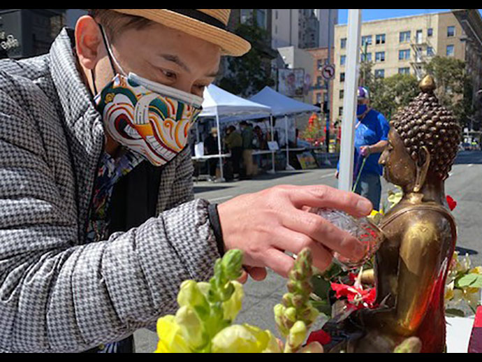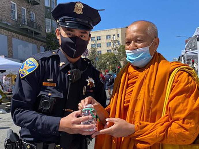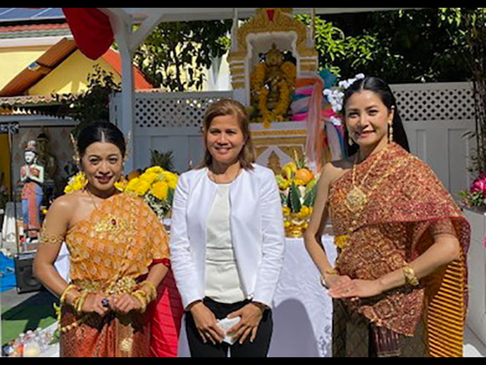 ชาวไทยร่วมองค์กรต่างๆ และร่วมกับเทศบาลนครซานฟรานซิสโก จัดงานสงกรานต์ ปีใหม่ ประเพณีไทยอย่างเรียบง่าย ปิดถนน Lakin /Eddy ผู้สื่อข่าวท้องถิ่น รายงานว่า การจัดงานสงกรานต์บนถนน เมื่อวันที่ 17 เมษายน 2564 ที่ผ่านมาได้รับความร่วมมือจากวัดพุทธประทีป ซานฟรานซิสโก นำโดย พระครูวรสิทธิวิเทศ เจ้าอาวาส พาคณะสงฆ์ร่วมงานมีนางสาวแนน ได้กราบอาราธนาเจริญพระพุทธมนต์ ฉันภัตตาหารเพลที่ร้าน ลภัส บนถนนLakin ของคุณภิญโญ เจริญสุข และนางสาวมุทจรินทร์ นิยโมสถ เจ้าของร้านและพนักงานถวายการต้อนรับเมื่อท่านพระครูวรสิทธิวิเทศ พาคณะสงฆ์เดินทางมาถึงที่ร้านเวลา 10.30 น. เจ้าหน้าที่รับมอบหมายกราบอาราธนา นางสาวมุทรินทร์ นิยโมสถ นำน้ำร้อนน้ำชาเข้ามาถวาย และได้สนทนาสอบถามสารทุกข์สุกดิบกันตามประสาคนไทยด้วยกันนานจะมีโอกาส ยิ่งช่วงโควิด 19 ลำบากกันมากทุกคนก็อดทนจนผ่านวิกฤติได้ฉีดวัคซินกันเกือบทุกคนแล้ว แต่ยังต้องระวังสายพันธุ์ใหม่ที่เกิดมาอีกจนกว่าจะถึงปลายปีนี้ได้เวลาสมควรทุกคนพร้อมกัน คุณภิญโญ เจริญสุข และคุณมุทรินทร์ นิยโมสถ และครอบครัวพ่อแม่พี่น้องพนักงานของร้านร่วมกันไหว้พระสมาทานศีล บูชาพระรัตนตรัย พระสงฆ์เจริญพระพุทธมนต์จบแล้ว ร่วมกันถวายภัตตาหารเพลแด่พระสงฆ์ หลังจากพระคุณเจ้าได้กระทำภัตกิจ เจ้าภาพได้ร่วมกันถวายเครื่องไทยทานกรวดน้ำรับพรเป็นอันเสร็จพิธีและกราบอาราธนาไปที่สถานที่จัดงานสงกรานต์ มีบูททางพระพุทธศาสนาไว้ให้พุทธศาสนิกชนได้สรงน้ำพระซึ่งเป็นประเพณีไทยสมัยโบราณ เรียกกันว่าเป็นวันปีใหม่ของไทย