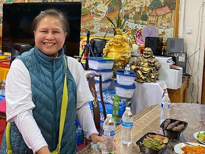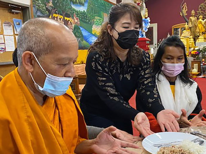 @@@. รับบทบาทหลายหน้าที่ อาจารย์สมบูรณ์ ประจันบาน ประธานสภาวัฒนธรรมไทยภาคเหนือเมืองริโน รัฐเนวาด้า ช่วงนี้วุ่นมาก ต้องทำหน้าที่ดูแลร้านคนเดียว แฟนก็เดินทางกลับไปเมืองไทยดูแลคุณพ่อคุณแม่ที่แก่ชรา อาจารย์กล่าวว่า ผมไม่ได้ไปไหนเลยวัดก็ไม่ได้ไปแต่ส่งวัสดุดิบไปให้ทางวัดทำอาหารถวายพระอย่างต่อเนื่องรับบุญทุกวันครับ