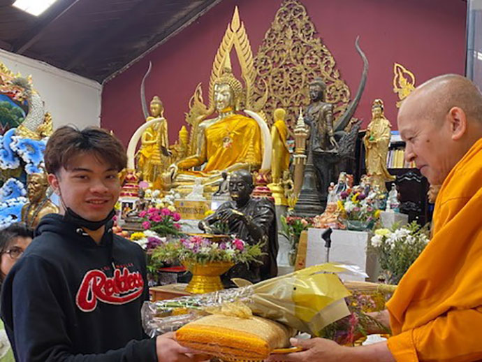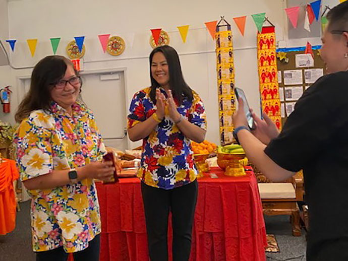 จัดงานสงกรานต์ส่งท้ายเดือนเมษายน ชาวไทยเมืองริโน ไม่ปล่อยให้เวลาแห่งความสุข ผ่านไปอย่างไร้รอย ทางสภาวัฒนธรรมไทยรัฐเนวาด้า ภาคเหนือเมืองริโน ร่วมกับวัดพุทธประทีป ริโน เมืองสปาร์ค รัฐเนวาด้า จัดงานสงกรานต์รักษาสืบสานประเพณีไทยในต่างแดน ในวันที่ 24 เมษายน 2565 ที่ผ่านมา ทีมงานข่าวจากนครซานฟรานซิสโก มีโอกาสเดินทางไปร่วมงาน หลังจากว่างเว้นหายไปหลายปี ติดโควิด ทางการไม่สนับสนุนการเดินทางไปไหนมาไหนอย่างสะดวกเหมือนสมัยก่อน สร้างความอึดอัดหัวใจ หลายประเทศตกอยู่ในสภาพเดียวกันหมด หันหน้าไปทางไหนมองลอดหน้าต่างเจอต้นไม้ต้นหญ้า ใบเขียวชอุ่ม ทำให้จิตใจเริ่มมีความหวังขึ้นมาให้เห็นได้ชัดเจน เมื่อไม่นานทางการได้ประกาศถอดแมสต์ออกจากใบหน้าสามารถถอดหน้ากากคุยกันได้แล้ว ความสว่างไสวเริ่มมีแววหวนกลับมาอีกครั้งหนึ่ง หลายคนหลายท่านได้ฉีดยาวัคซินเกือบจะหมดแล้ว บางท่านฉีด 3 เข็มแล้ว ถึงจะติดโควิด ก็อยู่ในอาการที่รักษาง่าย เพราะว่ามีเชื้อโควิด คอยป้องกันโควิดอยู่ในร่างกายแล้ว ไปถึงเมืองริโน รัฐเนวาด้าใช้เวลาในการเดินทางประมาณ 3-4 ชั่วโมง ถ้าออกเดินทางแต่เช้าครู่ ถึงก่อนพระฉันเพล ได้โอกาสเป็นลูกศิษย์อีกด้วย แต่พอถึงริโน จะหมดเวลาในการชมบรรยากาศ สรุปทีมงานออกเดินทางตั้งแต่ตอนเย็นของวันเสาร์ ไปพักชมบรรยากาศนอนที่เมืองริโนในยามค่ำคืนจะได้โอกาสท่องราตรีด้วย ไปถึงเมืองริโน ประมาณสามทุ่มยังสว่างอยู่ในช่วงนี้ เป็นช่วงฤดูร้อนความสว่างมีมากความมืดท่องราตรีตามประสาคนหนุ่ม เดินเก็บภาพสวยๆ ในยามค่ำคืนอย่างมีความสุขใจ จนเกือบเที่ยงคืนยังมีคนเดินเข้าเดินออก เมืองริโน เป็นเมืองที่ไม่เคยหลับ สี่ห้าสิบปีก็ยังเหมือนเดิม แต่ประชากรชาวไทยโยกย้ายไปตั้งหลักปัดฐานที่ลาสเวกัสสร้างเนื้อสร้างตัวเป็นจำนวนไม่น้อย จนปัจจุบันลาสเวกัสยิ่งใหญ่กว่าเมืองริโนหลายสิบเท่า พูดถึงริโน เป็นเมืองตั้งอยู่ในหุบเขาล้อมรอบ สองสามปีที่ผ่านมา มีคนย้ายเข้าอาศัยทำมาหากิน บ้านเรือนที่อยู่อาศัย ราคาบ้านและที่ดินตามดัชนีสูงขึ้นสามสี่เท่าตัว ได้เวลาพักผ่อนตื่นเช้าจะได้ทำหน้าที่เก็บภาพบรรยากาศ สิบโมงเช้าพบกันที่ลานจอดรถของวัดพุทธประทีป ริโน เมืองสปาร์ค ตามเวลากำหนด มีประชาชนหอบลูกจูงหลานเข้าไปในบริเวณวัดหลายสิบครอบครัว เห็นลูกศิษย์วัดวิ่งเข้าวิ่งออกเพื่อรองรับพี่ป้าน้าอา ที่หอบข้าวของมาจำหน่ายหาเงินเข้าวัด มาถวายสังฆทานบ้าง เดินตามเข้ามาในโบสถ์ ทางวัดได้จัดตบแต่งสถานที่ ทำพิธีทำอุทิศไปให้บุพพการีบุคคลท
