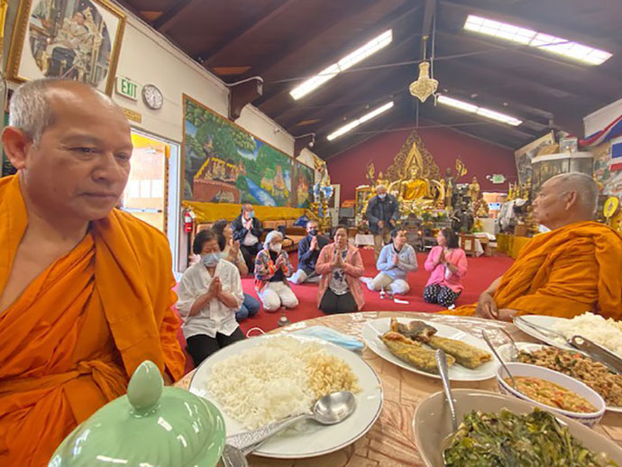 @@@.งานเผยแผ่พระพุทธศาสนา พระสงฆ์ที่เดินทางมาปฏิบัติศาสนกิจในต่างประเทศ ในแถบเบย์แอเรียซานฟรานซิสโก แต่ละรูปแต่ละองค์ต่างก็ทำงานกันอย่างเสียสละ ทั้งงานหลวงงานราษฎร์ ศาสนกิจต่างๆ จะได้เห็นพระคุณเจ้าแต่ละวัด เดินทางออกไปโปรดญาติโยมตามสถานที่ต่างๆ เป็นข่าวให้เห็นตามหน้าหนังสือพิมพ์อยู่เป็นประจำ เช่นท่านเจ้าคุณพระราชธรรมวิเทศ เจ้าอาวาสวัดพุทธานุสรณ์ เมืองฟรีมอนท์ และยังดำรงตำแหน่งประธานสมัชชาสงฆ์ไทยในสหรัฐอเมริกาอีกด้วยงานล้นมือ เวลาก็ผ่านไปอย่างรวดเร็ว ต้องทำงานแข่งเวลา ต้องกราบขออนุโมทนาที่ท่านได้เสียสละทำงานอย่างต่อเนื่องอีกรูปหนึ่ง คือพระครูวรสิทธิวิเทศ วัดพุทธประทีป ซานฟรานซิสโก ทำหน้าที่เผยแผ่หลายทาง เช่นตั้งหลักในพื้นที่ และนโยบายในเชิงรุก ทางออนไลน์ ทางเฟ๊สบุ๊ค ทางอีเมล์ ทางยูทูป ทางเอกสาร ทางโทรศัพท์ มีช่องทางใดที่เผยแพร่กิจกรรมต่างๆ ให้ถึงประตูเรือนของประชาชนอย่างทั่วถึง โดยเฉพาะอย่างยิ่งการแสดงธรรมออนไลน์ มีผู้ติดตามฟังทั่วโลก เป็นผลงานอย่างหนึ่งของพระธรรมทูตในยุคโควิดระบาด ข่าวคืบหน้าอย่างไรติดตามกันต่อไป