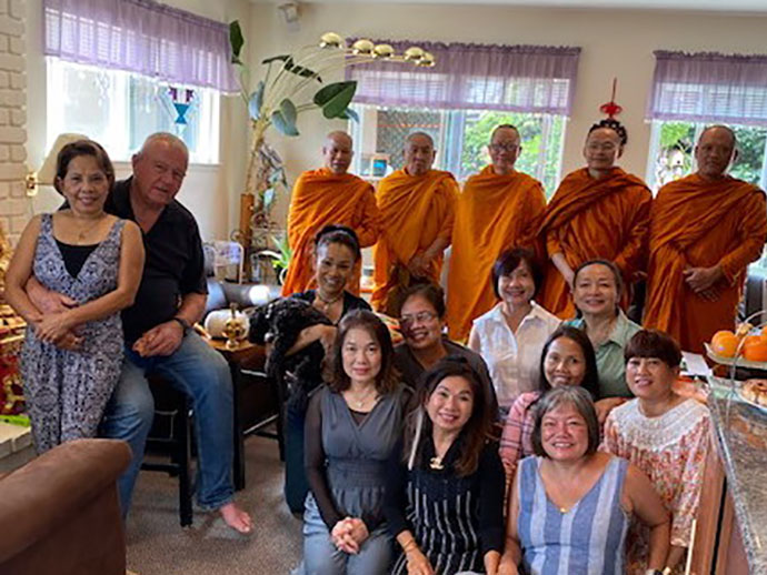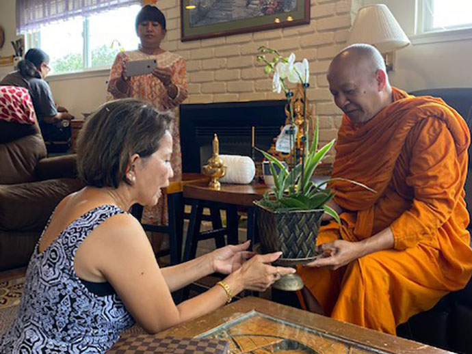 งานหลวงไม่ขาด งานราษฏร์ก็ไม่เว้น พระครูวรสิทธิวิเทศ ท่านพระอาจารย์สิทธิพร เจ้าอาวาสวัดพุทธประทีป ซานฟรานซิสโก กรรมการอำนวยสมัชชาสงฆ์ไทยในสหรัฐอเมริกา เมื่อวันที่ 16 กันยายน 2565 เห็นท่านเดินทางไปร่วมกิจกรรมปิดโครงการการเรียนการสอน บาลีสัญจรที่วัดพุทธานุสรณ์ เมืองฟรี ช่วงบ่ายเดินทางไปปฏิบัติศาสนกิจดูแลสถานที่ปฏิบัติธรรมวรสิทธิ บนเทือกเขาซานตาครู๊ส เพื่อสนทนาพูดคุยกับเพื่อนบ้านในระแวกนั้นจนค่ำ และเดินทางกลับมาพักที่วัดพุทธประทีป ซานฟรานซิสโก รุ่งขึ้นเดินทางไปศาสนกิจ เยี่ยมให้กำลังญาติโยมชาวไทย เมืองเซ้าส์ซานฟรานซิสโก และเดลี่ซีตี้ กลับถึงวัดจัดรายการเสียงธรรม จากวัดพุทธประทีป ซานฟรานซิสโก ช่วงสองทุ่มจนจบรายการ และเข้าเรียนทางออนไลน์ศึกษาปริญญาเอกคณะครุศาสตร์ สาขาการเรียนการสอนสังคมศึกษา ถึงตี 3 และต่อมาก็บินด่วนเข้าร่วมประชุมวิสามัญประจำปีของสมัชชาสงฆ์ไทย ระหว่างวันที่ 19-20-21-22-23-24 กันยายน 2565 ที่วัดพุทธาวาส เมืองฮิวตัน รัฐแท็กซัส จนกว่าจะเสร็จการประชุม จะกลับถึงวัดอีกหลายวัน ฝากข่าวถึงลูกศิษย์ลูกหาจะเดินทางไปพบพระอาจารย์ที่วัดเพื่อปรึกษาหารือต้องรอไปก่อน อีกหลายวันติดต่อสอบได้ที่วัด 650 615-9528 หรือส่งข้อความที่ 415 565-9650 ได้รับข้อมูลแน่นอน @@@. ทำงานให้คนอื่นรวยมาแล้ว ต้องทำให้ตนเองบ้าง คุณนงลักษณ์ สอนปัญญาหรือน้องเล็ก แม่ครัวมืออาชีพ ร่วมกับคู่ครองตัดสินใจทุบกระปุกออมสินซื้อธุรกิจร้านอาหารไทยเกือบครึ่งล้านเหรียญอเมริกัน ใช้ Star of Siam เมือง Soquel ใกล้ซานตาครู๊ส และคุณแม่สมใจ สอนปัญญา ก็เดินทางมาจากจังหวัดพิณณุโลก ให้กำลังลูกสาวอย่างเต็มที่ กราบอาราธนา พระครูวรสิทธิวิเทศ เจ้าอาวาสวัดพุทธประทีป ซานฟรานซิสโก และคณะสงฆ์เดินทางมาเจริญพระพุทธมนต์ฉันเพล เมื่อวันที่ 19 กันยายน 2565 มีเพื่อนๆ พี่ๆ บุคคลที่เคารพนับถือเดินทางมาร่วม กับคับคั่ง เช่น อาจารย์วัลลภ คชินทร รักษาการนายกสมาคมไทยแห่งแคลิฟอร์เนียภาคเหนือ ควงคู่อาจารย์นันทพร คชินทร มาร่วมงานด้วย คุณน้อย คุณอัมพร ยามาโมโต คุณวิรัตน์ คุณโอ้ คุณรัตนา คุณจิม โบเด้น คุณแม่ประทวน คชินทร คุณเผือก ร้านบางคอคเวสน์ คุณก้อยคุณแจ๋ว ร้าน@Thai บนถนนMission และ คุณไพรัช แฮมมิลตัล กำนันหญิงเมืองซานตา ครู๊ส คุณเป็ด คุณพอล คุณนงนุช คุณอึ้งเป็นต้น บรรยากาศในงาน คุณแม่สมใจ สอนปัญญา ควงลูกสาวต้อนรับแขกผู้มีเกียรติอย่างดียิ่ง ภัตตาหารที่เพื่อนๆ ต่างช่วยกันนำมาถวายพระจนเต็มโต๊ะ ขนมจากส่วนต่างๆ จากลูกศิษย์วัด ทำมาร่วมอีกไม่น้อยทีเดียว สร้างความประทับใจให้ผู้มาร่วมเป
