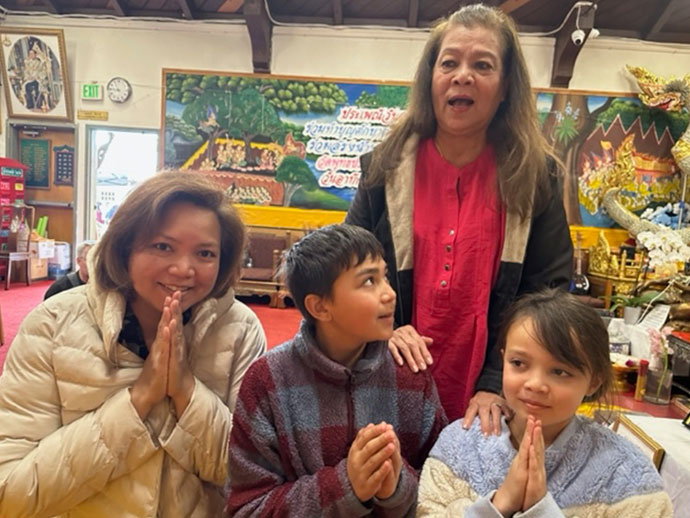 @@@.ทำบุญต่างแดน มาไกลจากประเทศอิตาลี คุณเสาวลักษณ์ พี่ปิ๋ว หาญยุทธ มาจากกรุงโรม ประเทศอิตาลี บินด่วนสู่นครซานฟรานซิสโก ถิ่นฐานบ้านเมืองเคยอยู่อาศัยมาช้านาน แต่ชีวิตพลิกต้องโยกย้ายติดตามคู่รักไปประกอบอาชีพ ที่ประเทศอิตาลีหลายปี จะเดินทางกลับญาติพี่น้องปีละครั้ง ช่วงสงกรานต์ ได้พาคู่ชีวิตแวะมาทำบุญวีนสงกรานต์ที่วัดเมืองซานบรูโน จนชุ่มฉ่ำหัวใจ ข่าวว่าก่อนกลับอิตาลี จะมากราบท่านพระครูวรสิทธิวิเทศ อีกครั้งหนึ่งในเร็วๆ นี้