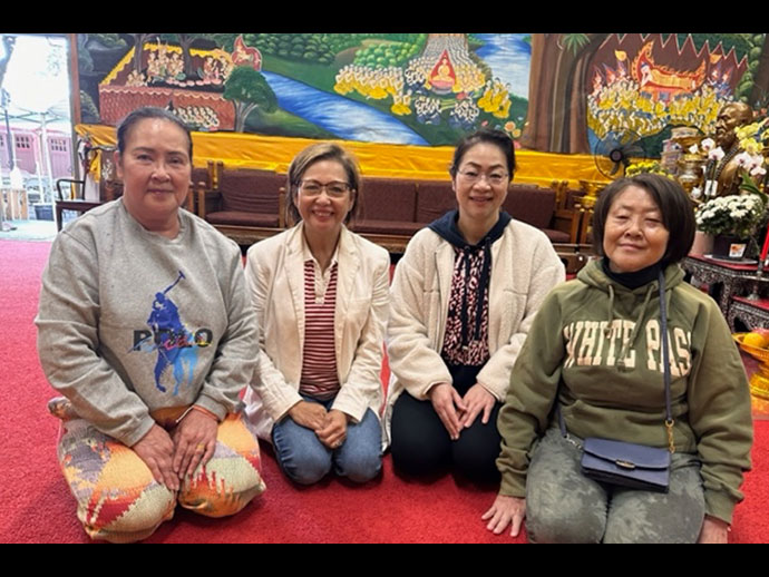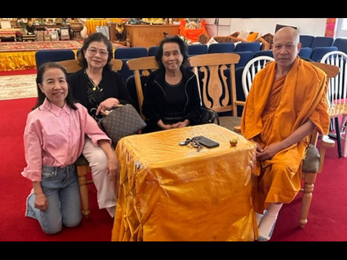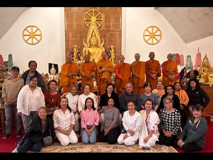 @@@. เป็นแบบอย่างของชาวพุทธ ชาวกลุ่มแม่บ้านวันจันทร์ เมืองซานมาเทียว รวมตัวเป็นกลุ่มเป็นก้อน ตระเตรียมอาหารคนละอย่างสองอย่างน้อมนำไปถวายพระคุณเจ้าตามหน้าที่ของชาวพุทธ ที่ปฏิบัติสืบต่อไปหลายพันปี มาจนปัจจุบันโดยเฉพาะอย่างยิ่งในประเทศไทยได้อิทธิพล ทางด้านวัฒนธรรม และพุทธศาสนามาจากประเทศอินเดียผสมปนเปกับวัฒนธรรม ไทใหญ่ไทน้อย ซึ่งเป็นชนเผ่าหนึ่ง ทางลุ่มแม่น้ำกวางโจ้ ไหล่ผ่านมาจากประเทศจีน ทิเบต ยาวมาถึงประเทศไทยลุ่มแม่น้ำโขงส่งไปถึงประเทศลาวผ่านประเทศไทยนครพนม มุกดาหาร หนองคาย ระยะทางหลายพันกิโล และลงทะเลหายไป ในชาวพุทธไทใหญ่รับวัฒนธรรมมา นานๆเข้าเกิดการเปลี่ยนแปลงผสมกันยกเลิกแก้ไขเพื่อให้การผสมทางวัฒนธรรมดีขึ้นตามลำดับ จนกระทั่งได้เกิดเป็นวัฒนธรรมไทยของเราอย่างแท้จริง เวลาล่วงเลยนาน ๆ เข้า ความดีทางพุทธศาสนา ที่เป็นเบ้าหล่อหลอมเยาวชนรุ่นแล้วรุ่นเล่า ที่นับถือพระพุทธศาสนาจำนวน 95% ของประชากรทั้งประเทศประมาณ 75 ล้านคน แยกไปนับถือศาสนาอื่น ๆ ประมาณ 10 ล้านคน นอกจากนี้ มีชาวไทยเดินทางออกนอกประเทศเพื่อไปประกอบอาชีพหาแหล่งรายได้เลี้ยงครอบครัว ไปยังประเทศต่าง ๆ ทั่วโลก เช่นประเทศญี่ปุ่น อังกฤษ เยอรมัน เกาหลีจีน ฮ่องกง บรูไน ใต้หวัน ประเทศสหรัฐอเมริกาเป็นต้น โดยเฉพาะอย่างยิ่งประเทศสกรัฐอเมริกา มีประชากรชาวไทยจำนวนล้านคน เดินทางมาในรูปแบบต่าง ๆ เช่น ด้านการศึกษานักเรียนไทยนับหมื่่นคน ด้านท่องเที่ยว ด้านประกอบอาชีพ ด้านการลงทุนและด้านอื่นๆ อีกมากมายหลายแขนง ด้านธุรกิจร้านอาหารไทยมีอยู่ทุกเมืองใหญ่ๆนครลอสแอนเจลิส ร้าน อาหารไทยมากกว่า 800 ร้านขึ้นไป กระจายไปทั่ว มหานครนิวยอร์ก เมืองใกล้เคียง อีก 100 ร้านขึ้นไป กระจายไปทั่ว นครชิคาโก กรุงวอชิงตันดีซี และเมืองใกล้เคียง อีก 50 ร้านขึ้นไปกระจายไปเมืองต่าง ๆ นครซานฟรานซิสโก ในตัวเมือง มาก 50 ร้านขึ้นไป รอบแถบเบย์แอเรียอีก 300 ร้านขึ้นไป กลับมาดูวัดไทยประชาชนร่วมกับพระสงฆ์ทั่วอเมริกาอีก 125 วัด ทั่วทุกรัฐของอเมริกา นอกจากนี้ชาวต่างชาติหันกลับมานับถือพระพุทธศาสนาอีกจำนวนไม่น้อย มีชาวต่างชาติ เข้าอุปสมบทเป็นพระ ในพระพุทธศาสนาอีกจำนวนไม่น้อย เป็นตัวอย่างที่ชาวไทยทั่วอเมริกา ทะนุบำรุงพระพุทธศาสนาอย่างมีความสุขใจ ได้สร้างวัดไทยไว้ให้อนุชนรุ่นหลังได้เรียนรู้ วัฒนธรรมอย่างไม่มีที่สิ้นสุดจะเจริญก้าวตามลำดับ