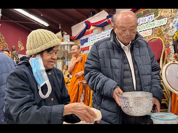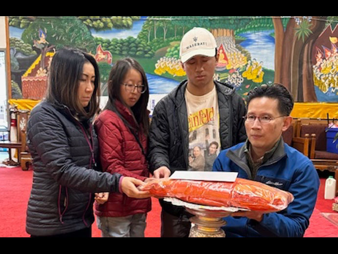 @@@.ฉายเดี่ยว ทำบุญวันเกิด นางสาวเพ็ญรัศมิ์ เจริญเนติศาสตร์ รองประธานสภาวัฒนธรรมไทยแห่งแคลิฟอร์เนียภาคเหนือ ถวายผ้าไตรจีวร แด่พระคุณเจ้า ในช่วงเช้าเสร็จแล้วรีบกลับไปดูแลบุคคลที่ใกล้ชิดที่บ้านย่าน เมือง Burlingame หลังจากนั้นก็ไปทำงานไม่มีเวลาจริงๆ ไม่ได้สังสรรค์กับเพื่อนๆ เลย