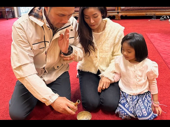 @@@.ควงกันมาทำบุญแต่เช้ามืด 3 สาวตระกูลศรีศวร จากเมืองฮาฟมูนเบย์ นำโดยคุณถนอมจิตร ศรีศวร คุณสุมาลี ศรีศวร คุณมณฑา ศรีศวร แวะมาที่วัดพุทธประทีปซานฟรานซิสโก แจ้งความประสงค์ ต่อท่านเจ้าอาวาส ขอถวายสังฆทานอุทิศส่วนบุญส่วนกุศลไปให้แก่ คุณพ่อถม คุณแม่บุญเลื่อน และนายทวีป ศรีศวร ผู้ล่วงลับไปแล้วขออำนาจบุญกุศลช่วยหนุนส่งดวงวิญญาณไปสู่ภพสูงๆตามลำดับด้วยเทอญ