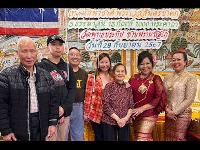 @@@.ทำบุญสายตรง ดร.บุญเกิด แป้นแก้ว นักวิชาการสภาวัฒนธรรมไทยแห่งแคลิฟอร์เนียภาคเหนือ เจ้าของธุรกิจร้านอาหารไทยย่านเซ้าส์ซานฟรานซืสโก บินกลับไปพักผ่อนเมืองไทยนับเดือน ทราบข่าวทางวัดพุทธประทีป ซานฟรานซิสโก มีเทศน์มหาชาติเวสสันดรชาดก โทรสายตรงถึงคุณนายบังอร วาระจันทโน คุณนายเจ้าของร้าน ก็รีบบึ่งไปวัดทันที นำปัจจัยกัณฑ์เทศน์ กัณฑ์สักกบรรพ จำนวน 500 เหรียญ เมื่อวันที่ 29 กันยายน 2567 ที่ผ่านมา รับบุญกันเต็มๆ ทั้งคุณนายบังอร ทั้ง ท่าน ดร.บุญเกิด สาธุ…