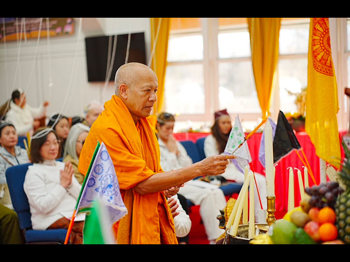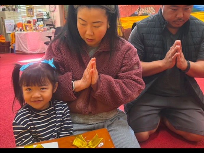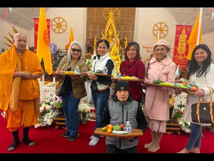สืบสานวัฒนธรรมไทย พุทธศาสนิกชนชาวไทยเมืองริโน รัฐเนวาด้า ร่วมกับสมาชิกและพระสงฆ์ วัดพุทธประทีป ริโน เมืองสปาร์ค จัดพิธิสืบสานสะเดาะเคราะห์เจริญพระพุทธมนต์ปีใหม่เสริมสิริมงคลดวงชะตาชีวิตปีใหม่ 2568 ทำบุญตักบาตร บรรยากาศในช่วงเช้า คุณชินตา วู๊ดริ่ง รองประธานคณะกรรมการ พร้อมกับทีมงานเช่น คุณเล็ก คุณสุชฏา คุณเจนจิรา คุณเฮี้ยง คุณสิริมา คุณทราย คุณแป้ง คุณวิโรจน์ คุณนงนุชลี เป็นต้น ต่างช่วยกันจัดอาหารตระเตรียมพร้อมรองรับพี่น้องชาวไทยและชาวต่างชาติ ที่จะทยอยเข้ามาเพื่อร่วมในพิธีเสริมสิริมงคลในวันนี้ 9.50 น. ดร.พระครูวรสิทธิวิเทศ เจ้าอาวาสวัดพุทธประทีป ซานฟรานซิสโก และคณะสงฆ์ ได้เดินทางมาถึง คณะสงฆ์วัดพุทธประทีป ริโน เข้าถวายการต้อนรับ พาเข้าไปในอุโบสถรับรองด้วยน้ำร้อนน้ำชา และร่วมสนทนาสอบถามสารทุกข์สุกดิบพอสมควรแก่เวลา ท่านได้ทักทายชาวพุทธแถบเมืองริโน ลูกศิษย์ลูกหาแถบนั้นจนครบทุกคน จนได้เวลา พุทธศาสนิกชนเรียงรายเข้าแถวพร้อมที่จะทำบุญใส่บาตรนำโดย ดร.พระครูวรสิทธิวิเทศ และพระสงฆ์ภายในโบสถ์ ด้านนอกอากาศค่อนข้างจะหนาว หลังจากทุกท่านใส่บาตรกันหมดแล้วได้ร่วมกันถวายภัตตาหาร โดย อาจารย์ศรีนินทร์ ศรีแสนได้ทำหน้าที่เป็นพิธีกร นำพากล่าวคำถวายภัตตาหาร จนกระทั่งพระคุณเจ้ากระทำภัตตกิจเสร็จแล้ว ลูกศิษย์วัดร่วมกันทานอาหารตามแบบประเพณีไทยร่วมวงทานอย่างมีความสุขใจ เวลา 13.00 น. เมื่อทุกคนทำภารกิจส่วนตัวเสร็จแล้วเข้ามาในอุโสบถ เขียนวันเดือนปี ของตนเองและของญาติพี่น้อง เพื่อนสนิทมิตรสหาย ไม่สามารถจะเดินทางมาร่วมงานได้ฝากชื่อนามสกุลพร้อมค่าบูชาครู พิธีกรขอเชิญคุณตุ้ม ดักเลย์ เจ้าของธุรกิจร้านอาหารไทย เป็นประธานจุดธูปเทียนบูชาพระรัตนตรัย สมาทานศีล ประกอบพิธีอัญเชิญเทพเทวา กราบอาราธนา ดร. พระครูวรสิทธิวิเทศ เป็นประธานจุดเทียนชัย พระสงฆ์เจริญพระพุทธมนต์ตามลำดับพระพุทธมนต์ที่พระสงฆ์นำมาสวดเจ็ดตำนานต่อด้วยสิบสองตำนานใช้เวลาประมาณครึ่งช่วงโมงและท่านสาธุได้ร่วมกันสวดมนต์บทคาถาโพธิบาท ชัยมงคลคาถาเสริมสิริมงคลตลอดทั้งปี และได้ร่วมกันถวายผ้าไตรจีวรวันปีใหม่ ได้ร่วมกันทำบุญทั้งวัน สุดท้ายของกิจกรรม ท่าน ดร.พระครูวรสิทธิวิเทศ พาคณะสงฆ์ทุกท่านให้พรเป็นภาษาต่าง ๆ สร้างความครื้นเครงไม่น้อยทีเดียว ในเมื่อรับพรเป็นภาษาไทยแล้วร่วมกันกรวดน้ำรับพรเป็นภาษาบาลี รับผลไม้มงคลเป็นเสร็จพิธี