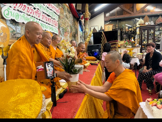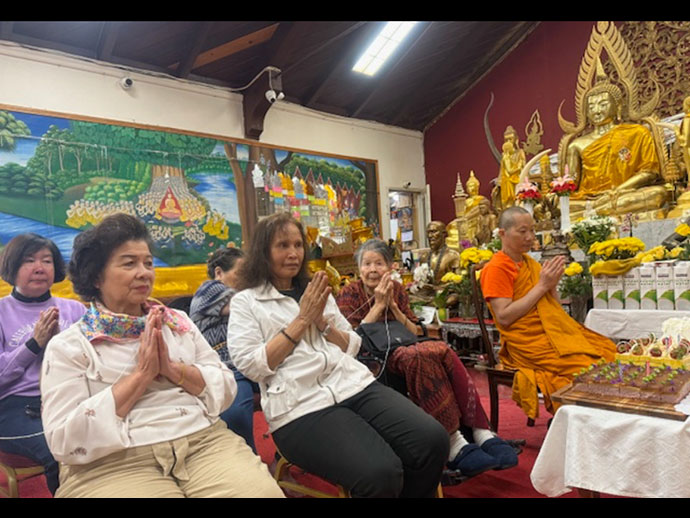 กระชับความสัมพันธ์ไมตรีบ้านพี่เมืองน้อง คุณพรทิพย์ บุญทา คณะกรรมการอุปถัมภ์วัดพุทธประทีป ริโน เมืองสปาร์ค รัฐเนวาด้า พาคณะกลุ่มผู้แสวงบุญจำนวนหลายคนขับรถลัดเลาะจากเมืองริโน ผ่านเมืองสค้าเม้นโต้ จนกระทั่งมาถึงผ่านนครซานฟรานซิสโก จนถึงเมืองซานบรูโน เข้าร่วมกิจกรรมงานสำคัญที่วัดพุทธประทีป ซานฟรานซิสโก เมื่อวันที่ 17 มิถุนายน 2568 มีคณะลูกศิษย์วัดพุทธประทีป ซานฟรานซิสโก จัดทำบุญอายุวัฒนมงคลถวาย ให้กับพระมหาฐนกร กตปุญโญ เลขานุการ วัดพุทธประทีป ซานฟรานซิสโก มีอายุวัฒนมงคลครบรอบพอดี เมื่อรถเข้ามาภายในลานจอดรถของวัด มีลูกศิษย์วัด เข้าไปให้การต้อนรับแขกผู้มีเกียรติที่เข้ามาเยือน มีพระอาจารย์วิทยา พรมสิงห์ พระใบฏีกาพัทธพล คุณเสฏโฐ จากวัดพุทธประทีป ริโนและคุณนายพรทิพย์ บุญทา เป็นหัวหน้าคณะ นำสมาชิกเช่น คุณสุชฏา เจริญชัยปรารถนา คุณบุณฑริก หลิน พ๊อตส์ เข้ากราบพระครูวรสิทธิวิเทศ ดร. เจ้าอาวาสวัดพุทธประทีป ซานฟรานซิสโกร่วมสนทนาสอบถามสารทุกข์สุขดิบ มีคุณเรณู ชัยศรี คุณศรีนินทร์ ศรีแสน คุณย่าสังเวียน แก้วดวงเล็ก คุณผ่องศรี สุขรมย์เป็นสนทนากัน นาน ๆ จะมีโอกาสพบกัน ต่างคนต่างมีภารกิจ พร้อมนำข้อความจากชาวไทยเมืองริโน ฝากถึงท่านพระอาจารย์สิทธิพร นานแล้วไม่ได้ไปริโนญาติโยมลูกศิษย์ฝากกราบถามถึงกันทั่ว ขอให้เดินทางไปเยี่ยมบ้าง พระอาจารย์รับปาก น่าจะเป็นช่วงเข้าพรรษาหรือ งานบาลีสัญจร จะเป็นเมื่อไหร่จะแจ้งให้ทราบอีกครั้ง หลังจากนั้น ไหว้พระรับศีลและฟังพระสงฆ์เจริญพระพุทธมนต์ ร่วมกันทำบุญถวายสังฆทาน และทำบุญตักบาตร ร่วมกันถวายภัตตาหารแด่พระสงฆ์ เรียบร้อยแล้ว ก็ร่วมรับประทานอาหารบุพเฟ่ต์ อย่างมีความสุขใจ ใครจะเลือกทานอะไรตามใจปรารถนา ทานอาหารไปสนทนากันไป บรรยายการกระชับความสัมพันธไมตรีระหว่างเมืองริโน ซานฟรานซิสโก เป็นอย่างชื่นมื่น เมื่อไหร่ชาวซานฟรานจะยกขบวนไปร่วมงานที่ริโนบ้าง เป็นคำถามก่อนลาเพื่อเดินทางกลับเมืองริโนในช่วงบ่ายของวันเดียวกัน