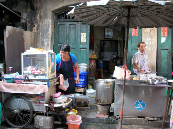 และสิ่งที่อดมาเล่าสู่กันฟังไม่ได้ คือ อาหารการกิน เพราะอาหารที่โรงแรมไม่อร่อยแล้วก็แพงด้วย สู้เราออกมาแถว ๆ โรงแรมในซอยต่าง ๆ มีขายของตั้งแต่เช้าตี 5 ทานโจ๊กหมูใส่ไข่ 30 บาท ($1) พิเศษใส่ไข่สองฟอง เครื่องในหมูก็ 40 บาท และน้าเตาหู้ แม่ค้าก็มีอัธยาศัยที่ดีมาก เห็นพวกเราหน้าแปลก ๆ เพราะไม่เคยเห็น นึกว่าเป็นต่างชาติชาวเกาหลี จีนแดง เสียอีก คุย ๆ กันก็แถมปาท่องโก๊ให้อีก ก็เลยต้องทิปให้ด้วย คุณเขาบอกว่าวันหนึ่งขายได้สัก 1,000 กว่าบาทก็แฮปปี้แล้ว