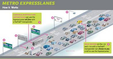 เป็นอย่างไรครับ จุดประสงค์สวยหรู METRO ได้ศึกษาจาก 14 เมืองที่เขาใช้วิธีเปิดช่องพิเศษให้ผู้ขับขี่คนเดียวเข้ามาใช้โดยเก็บค่าใช้ช่องทางนี้แล้วได้ผล เช่น ใน San Diego, Orange County, Seattle กลับจะมีรายรับเข้ามาให้กรมตัวเองอีกปีละ 18-20 ล้านเหรียญ มีหรือจะไม่เอา แล้วเมื่อวันที่ 28 กันยายน 2008 รัฐบาลแคลิฟอร์เนียก็ผ่านกฎหมาย Senate Bill 1422 ให้ METRO และ CALTRANS ไปดำเนินการได้